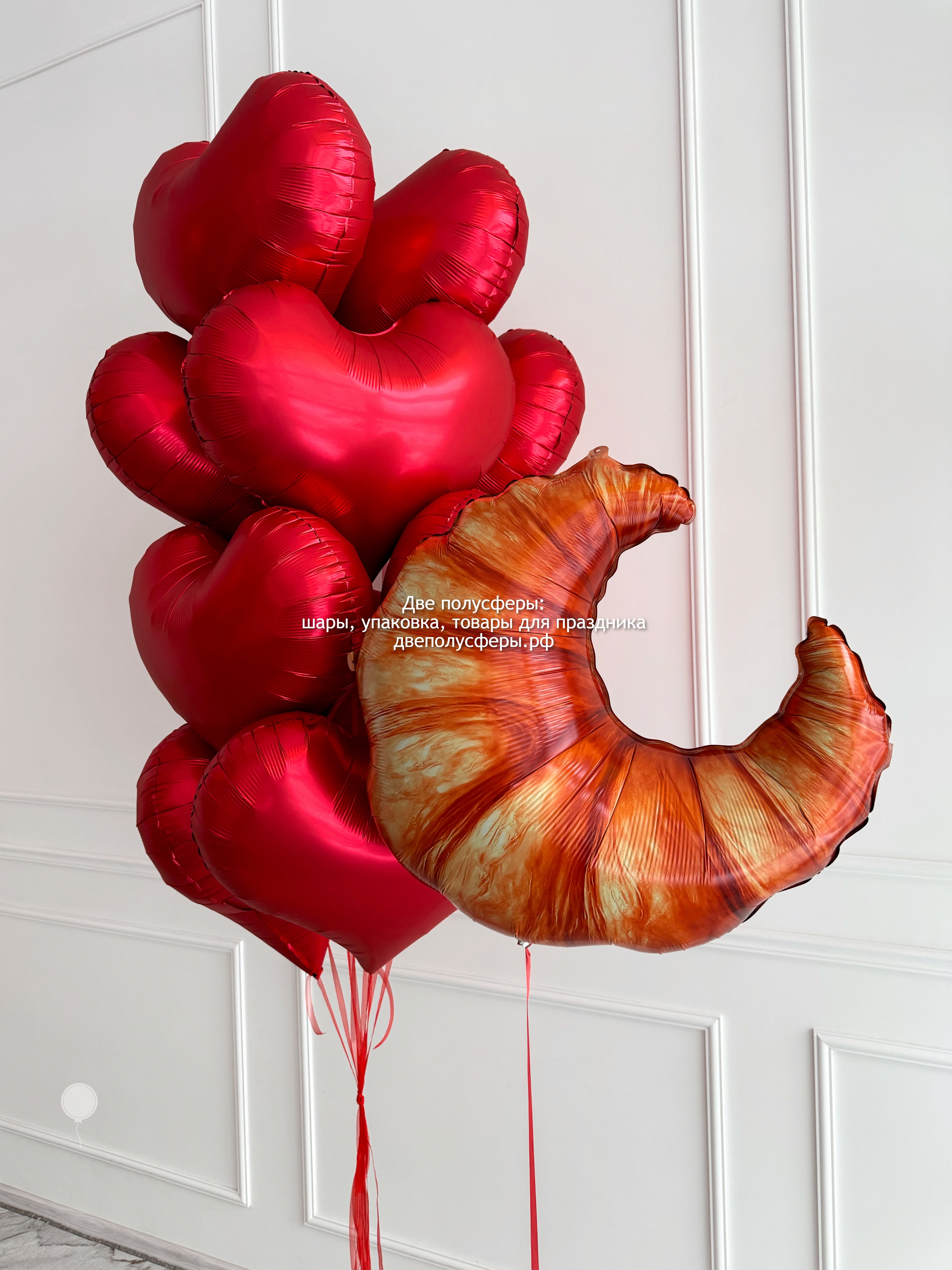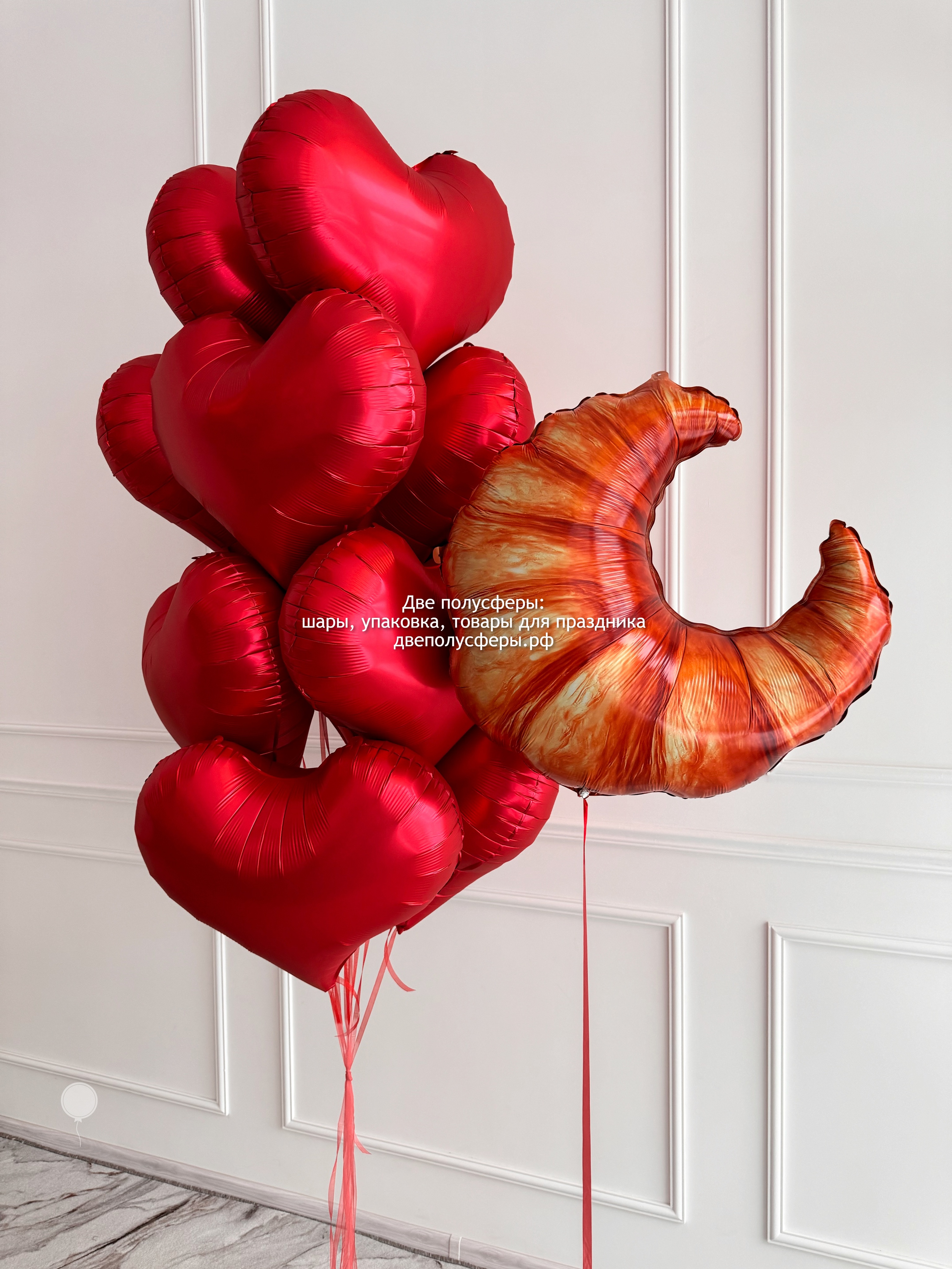 Фонтан из 10 фигурных сердец 55 см, грузик и пакет