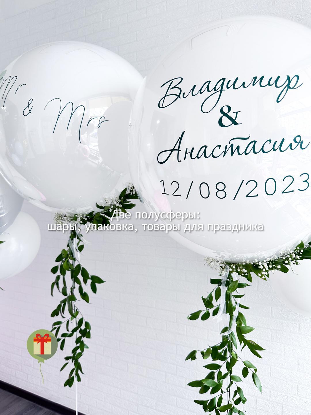 2 дабл бабл 60 см с надписями на свадьбу, декорированы веточками живой зелени, грузики, пакеты