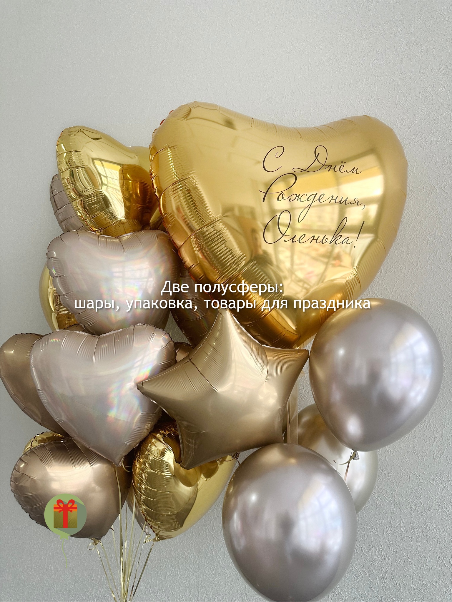 Фонтан из 13 фольгированных сердец 45 см и фонтан из 6 штук: сердце 60 см+ надпись, звезда 45 см и 4 шара хром. Грузики и пакеты включены в стоимость.