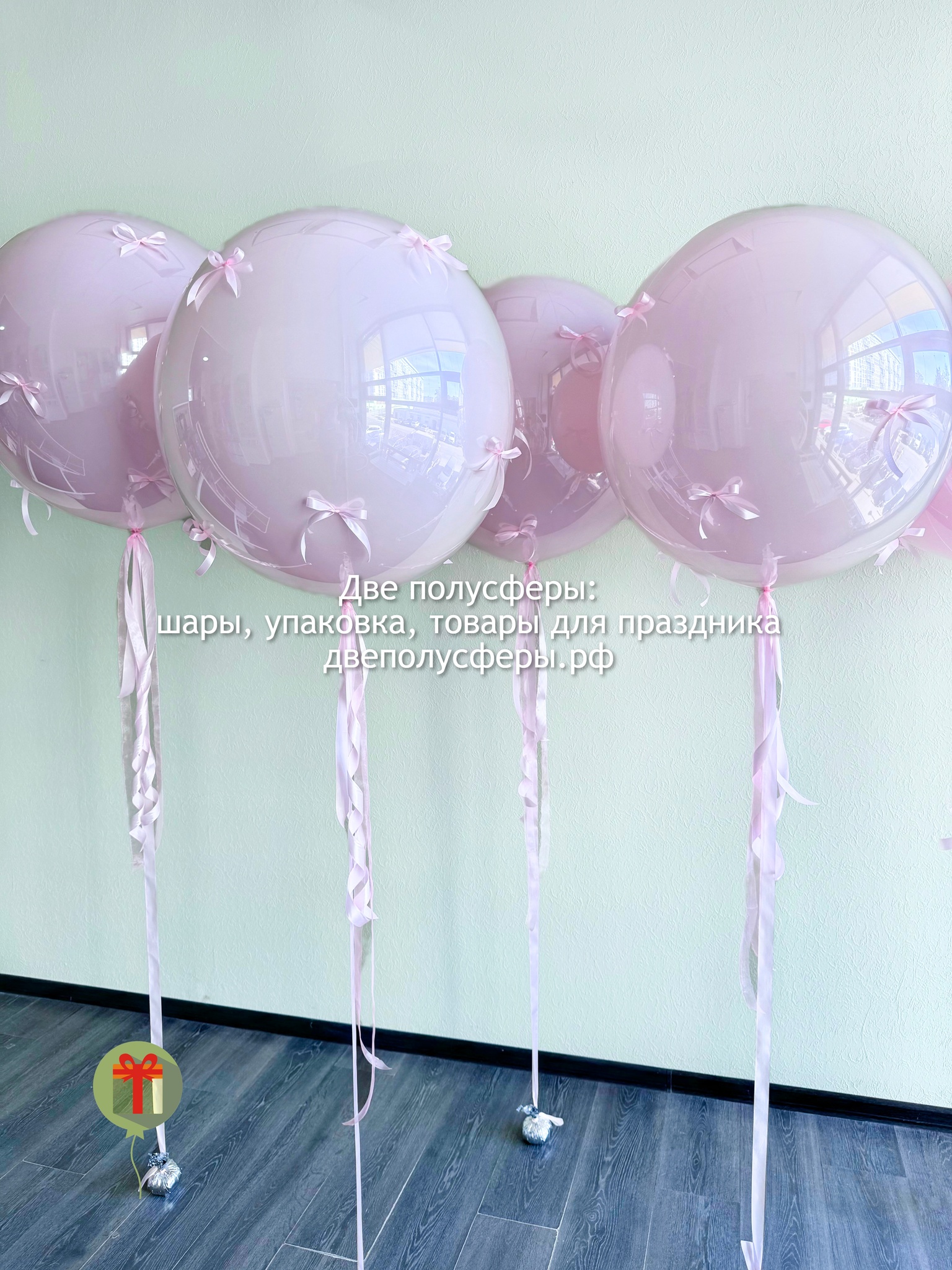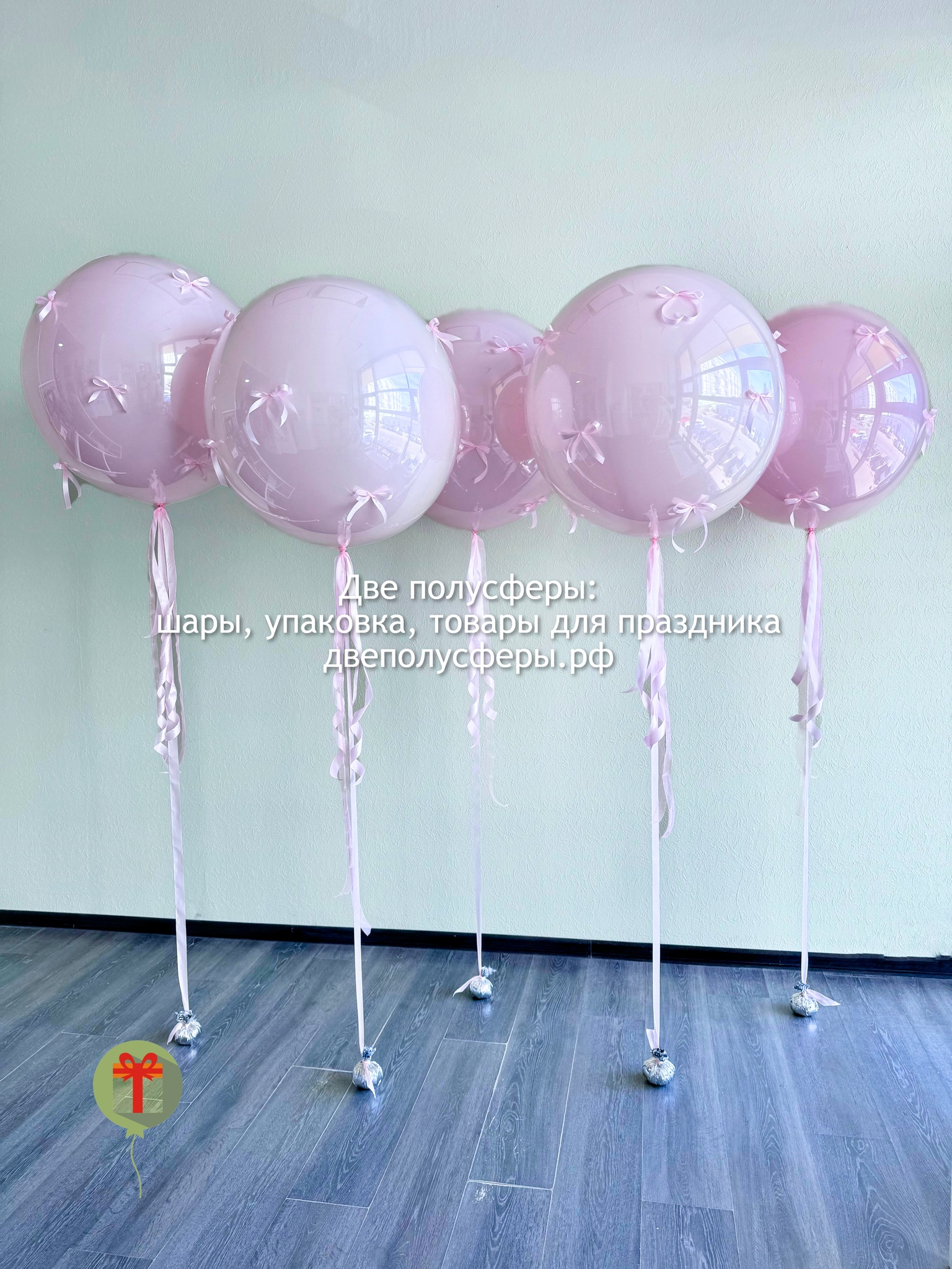 5 сфер дабл бабл 60 см, декорированные бантиками. Грузики и пакеты включены в стоимость.