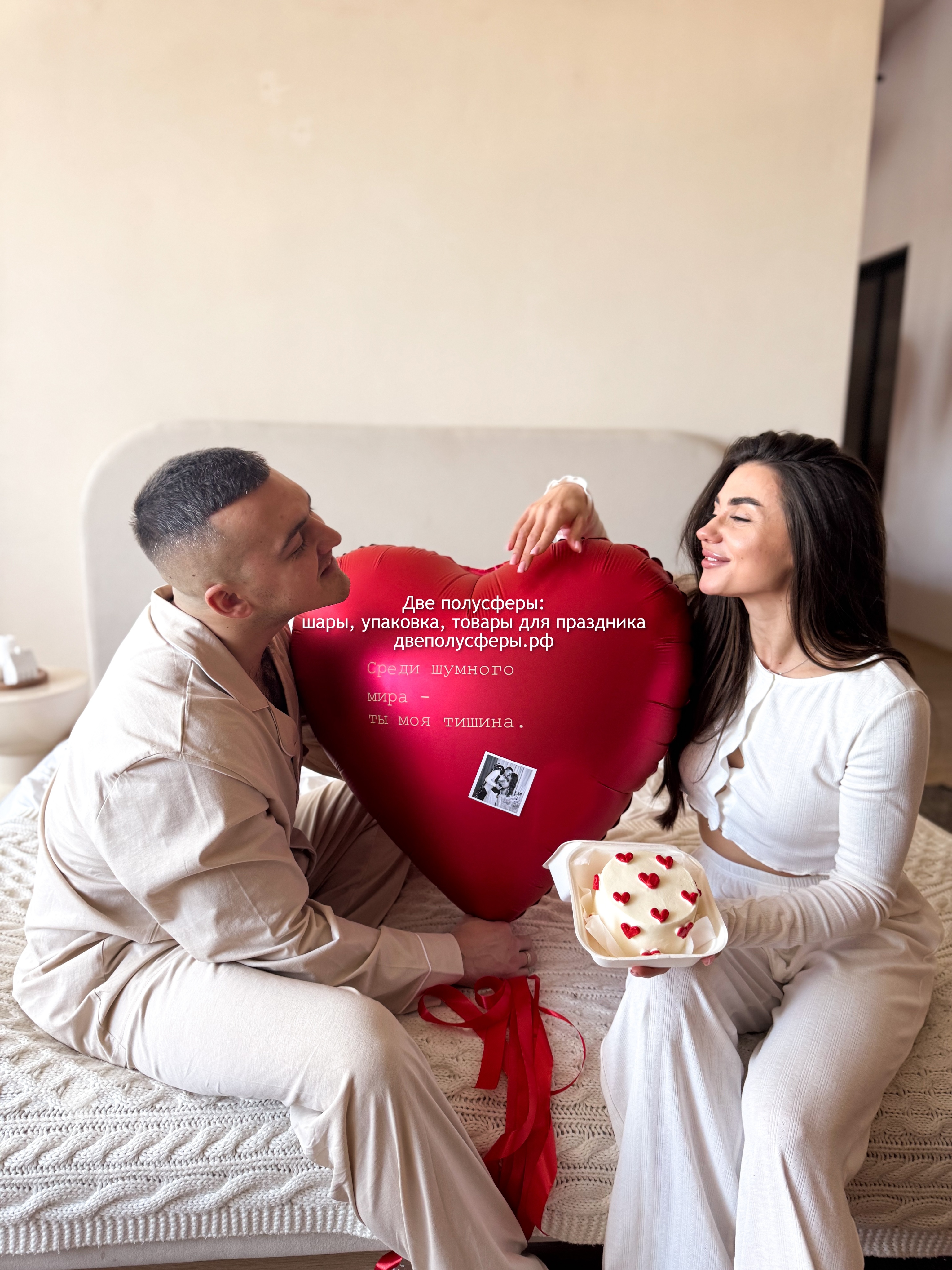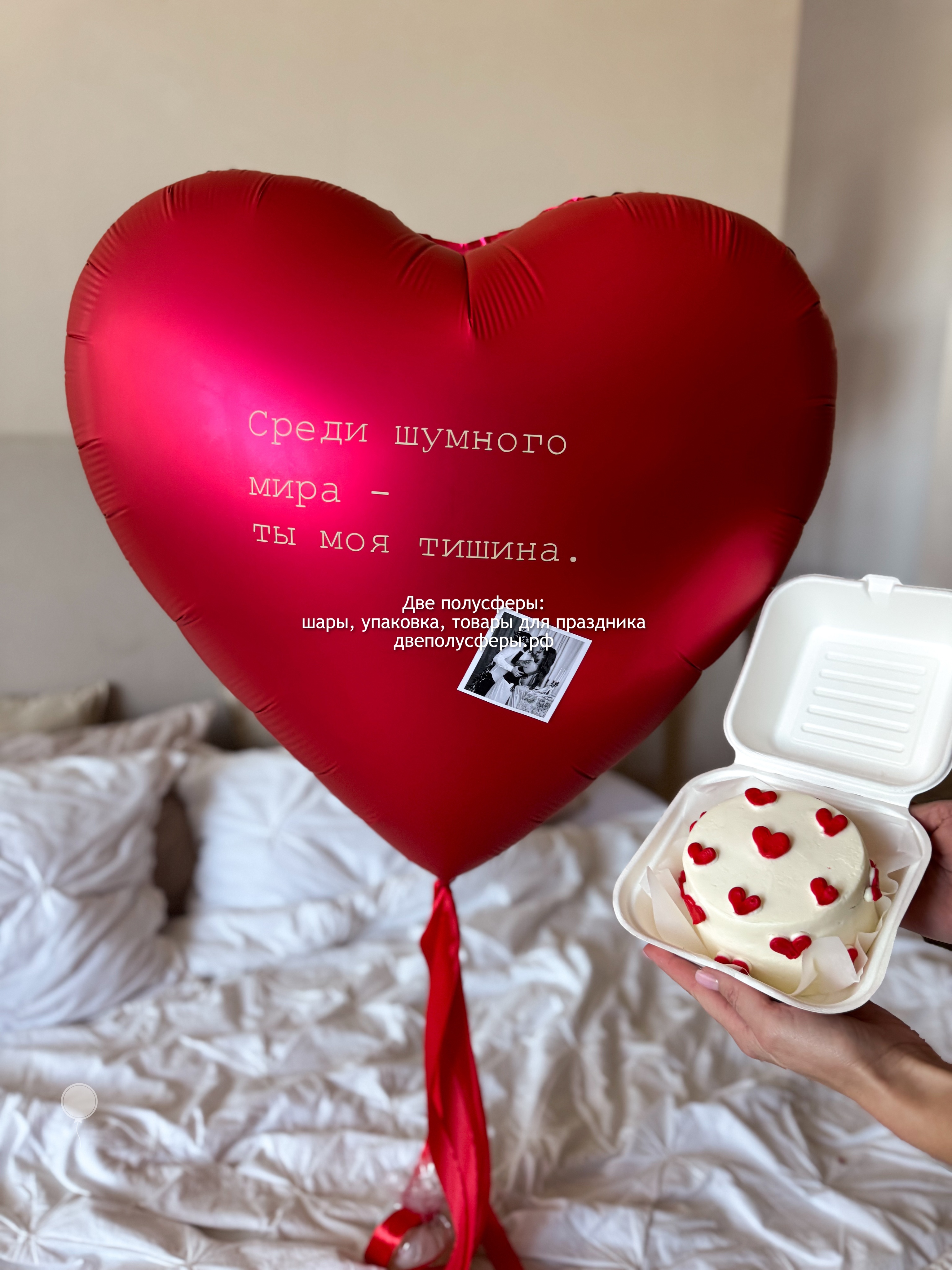 Сердце 60 см с надписью и лентами, грузик и пакет входят в стоимость