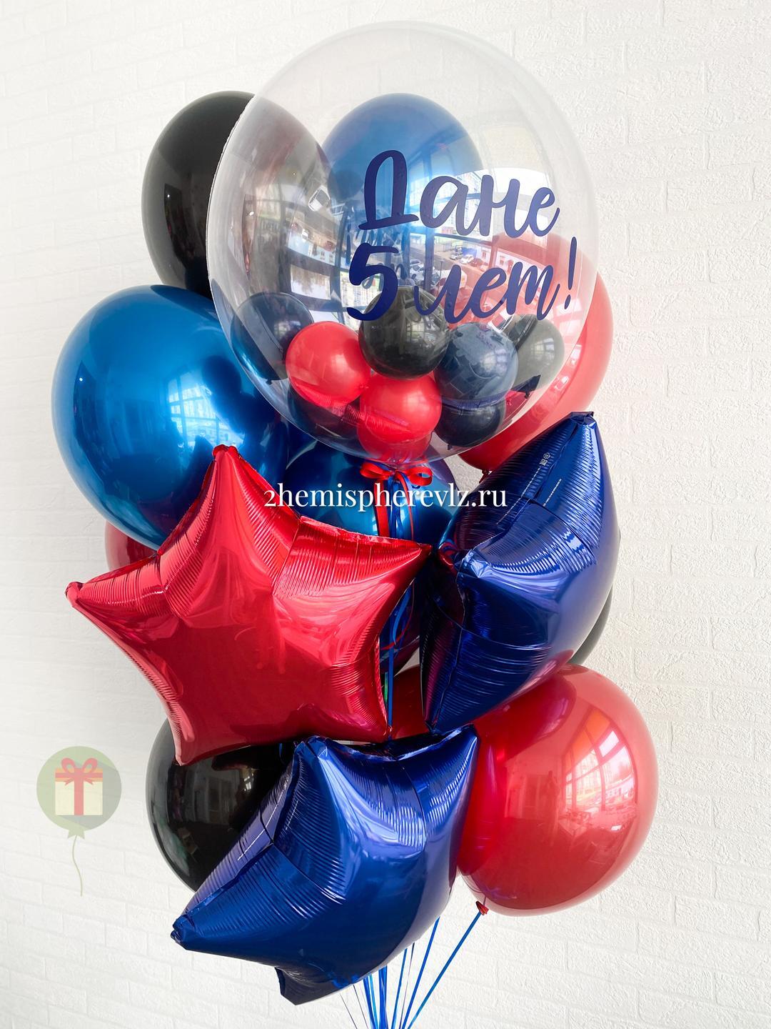 Большой красно-синий набор из 15 шаров со сферой. В составе: сфера 50 см с шарами внутри+ надпись, 3 фольгированных шара 45 см, 8 двойных шаров хром и 3 шара пастель.  Грузики и пакеты включены в стоимость.