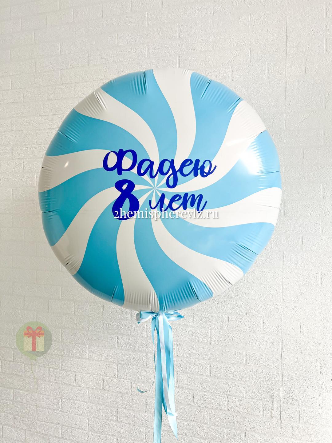 Большой фольгированный шар 60 см леденец карамелька с надписью. Грузики и пакеты включены в стоимость.