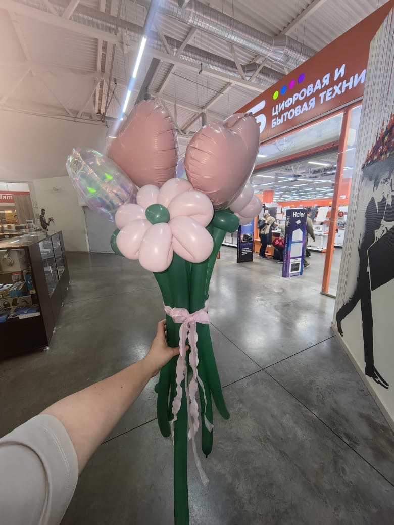 Букет микс из ромашек и сердечек