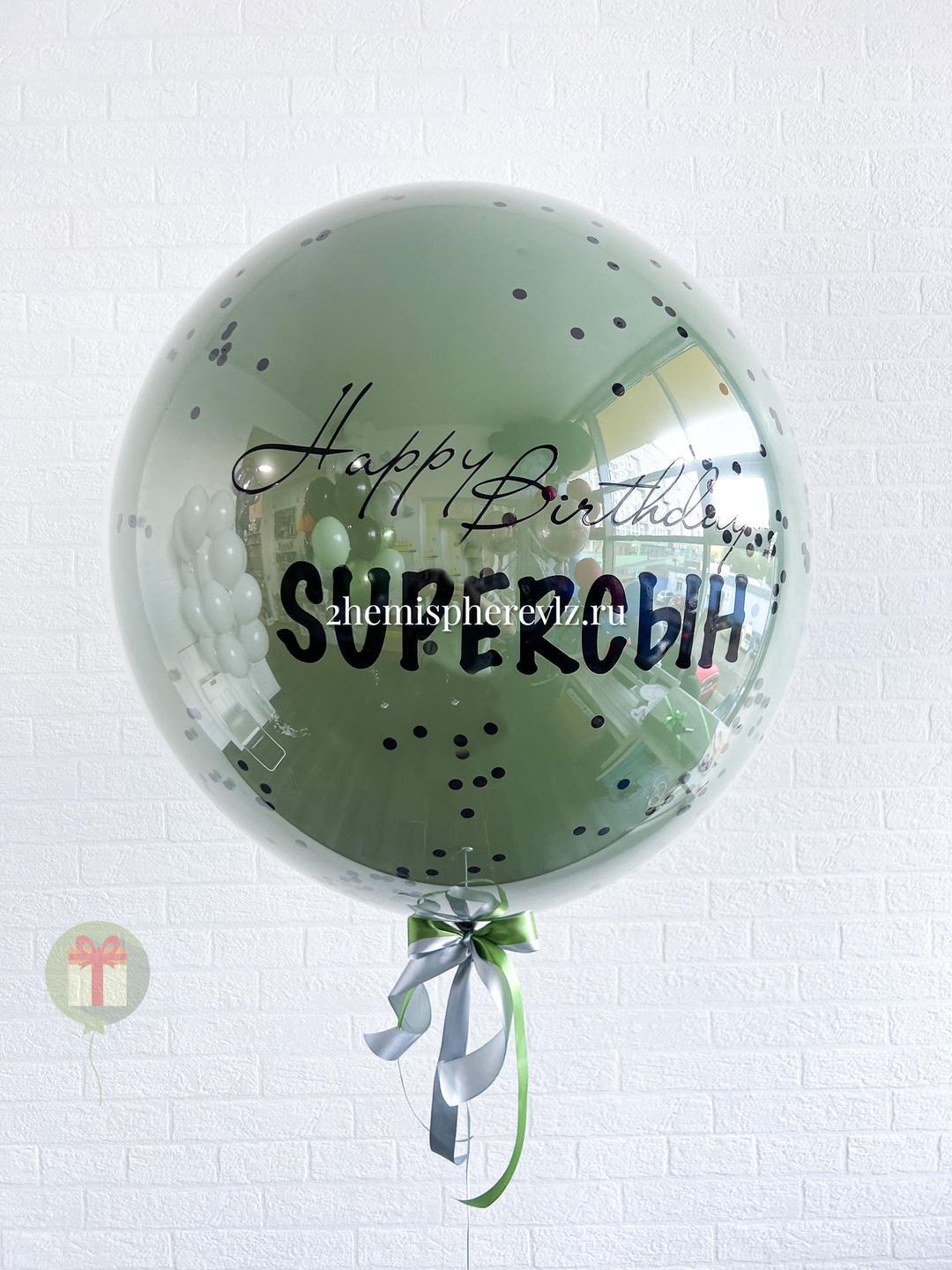 Дабл бабл в фисташковом цвете 60 см с конфетти + надпись. Грузики и пакеты включены в стоимость.