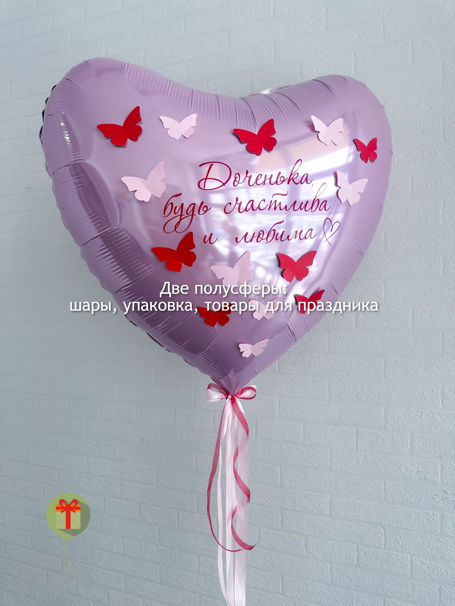 Фольгированное сердце 60 см с надписью и бабочками, грузик и пакет входят в стоимость.