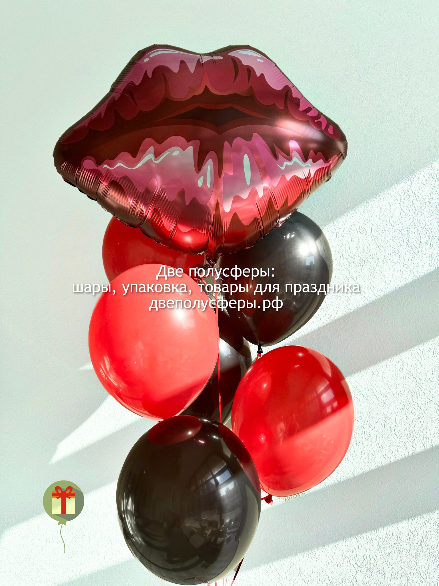 Фонтан из 7 штук: фигурка Губы и 6 шаров пастель. Грузики и пакеты включены в стоимость.