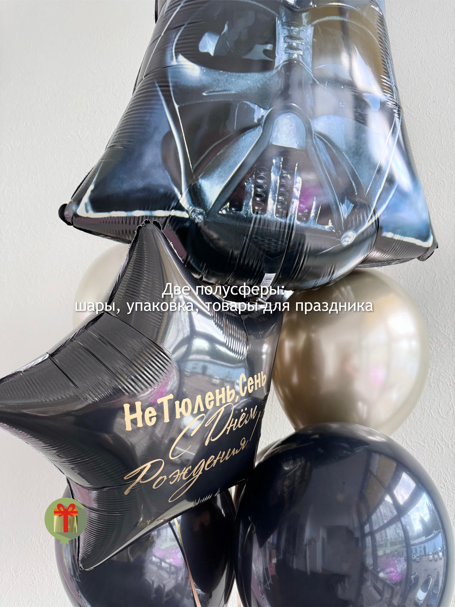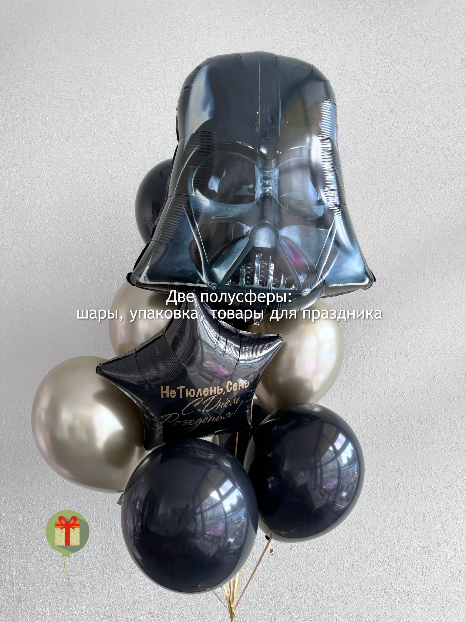 Фонтан из 10 штук: фигура фольгированная, звезда 45 см+ надпись, 3 шара хром и 5 шаров пастель. Грузики и пакеты включены в стоимость.