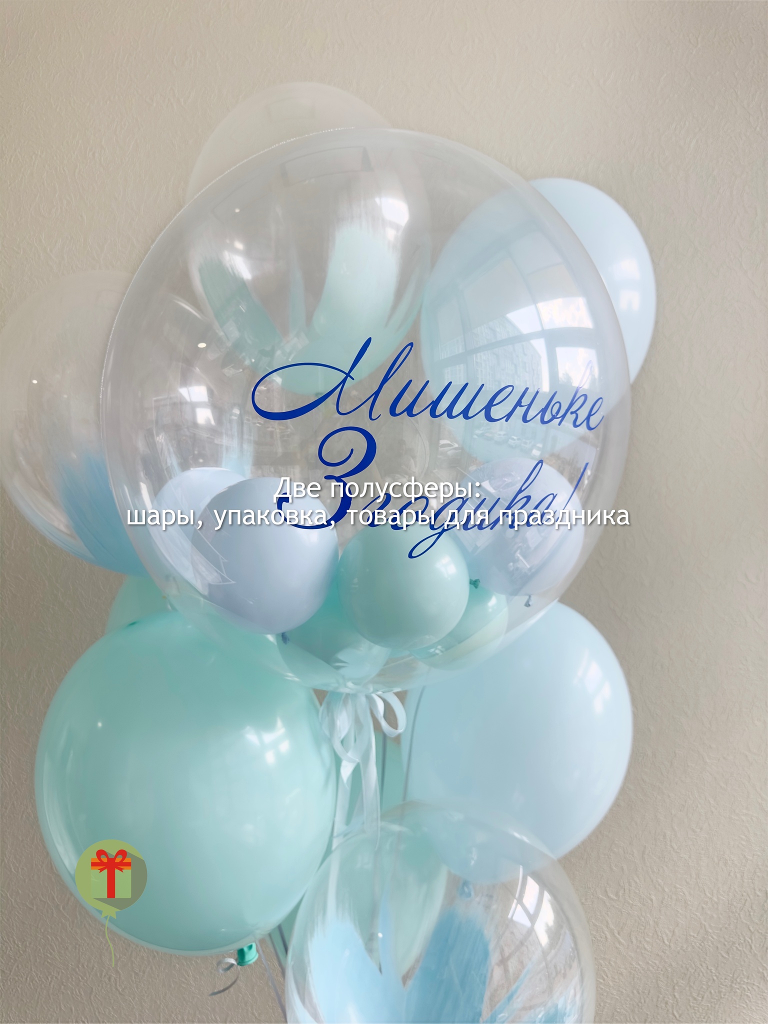 Фонтан из 9 штук: сфера с шарами 60 см+ надпись, 4 шара браш и 4 шара пастель. Грузики и пакеты включены в стоимость.