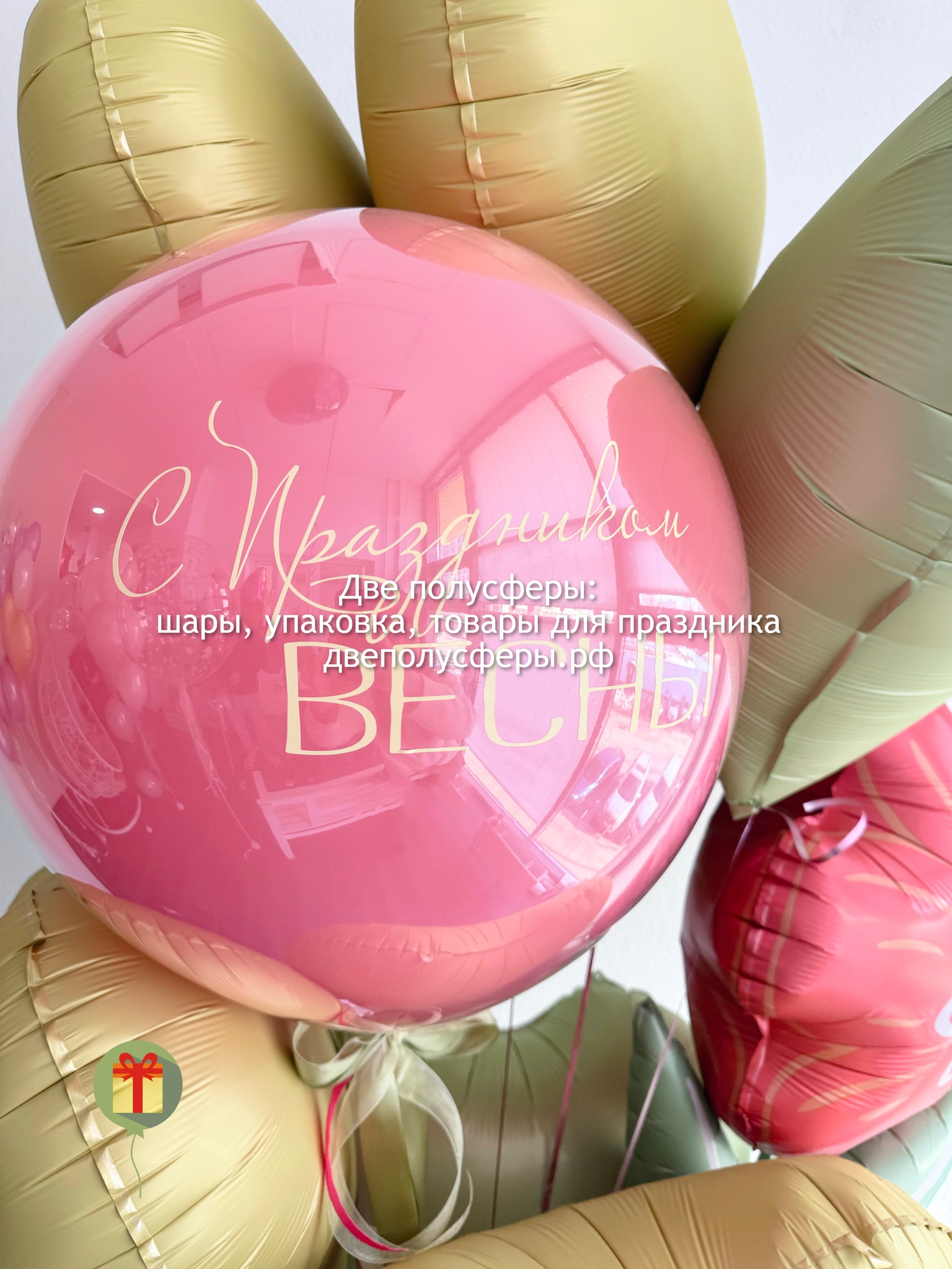 Большой фонтан из 10 штук: сфера дабл бабл 45 см+ надпись, фигура цветок и 8 фольгированных сердец 55 см. Грузики и пакеты включены в стоимость.
