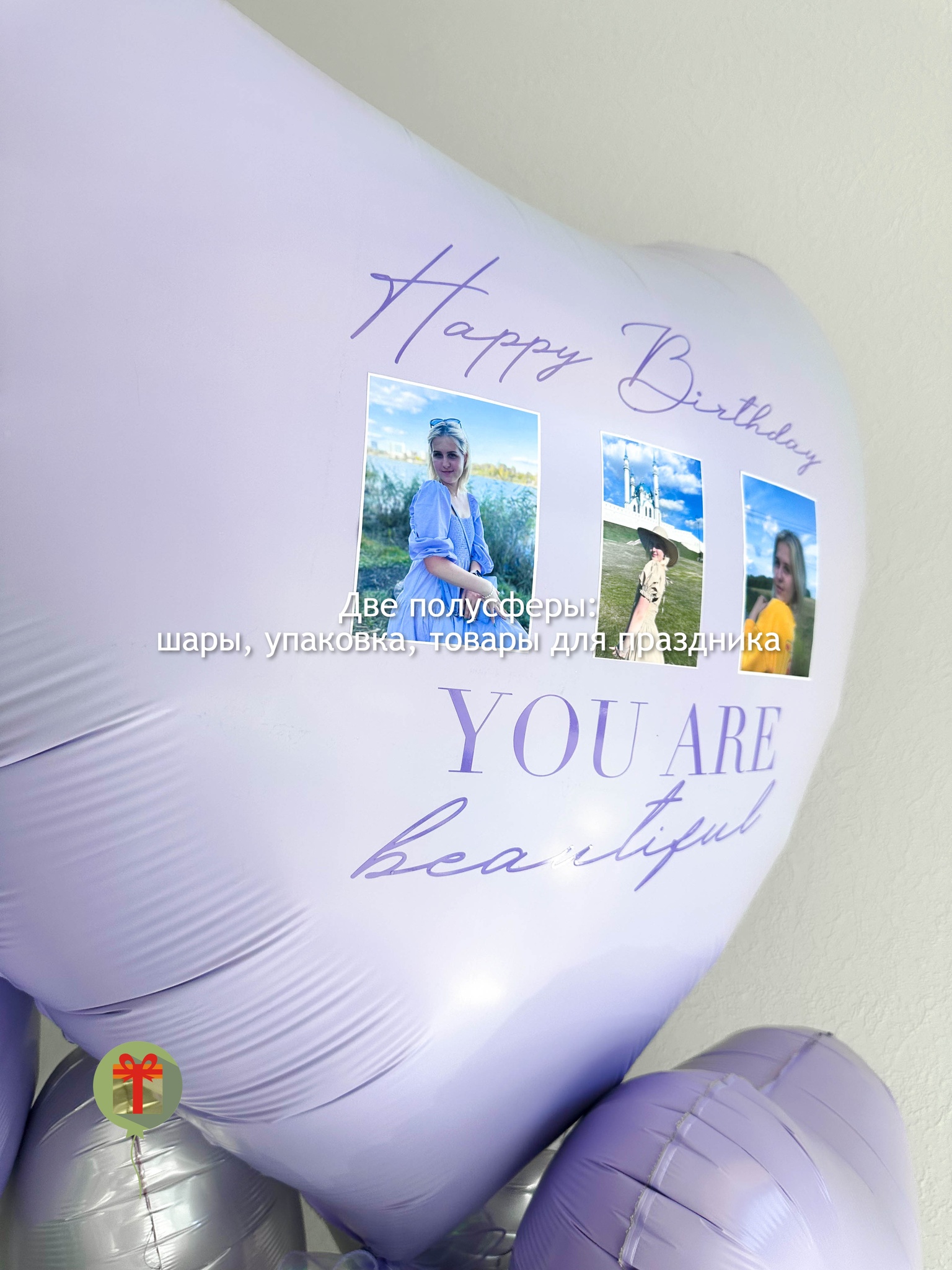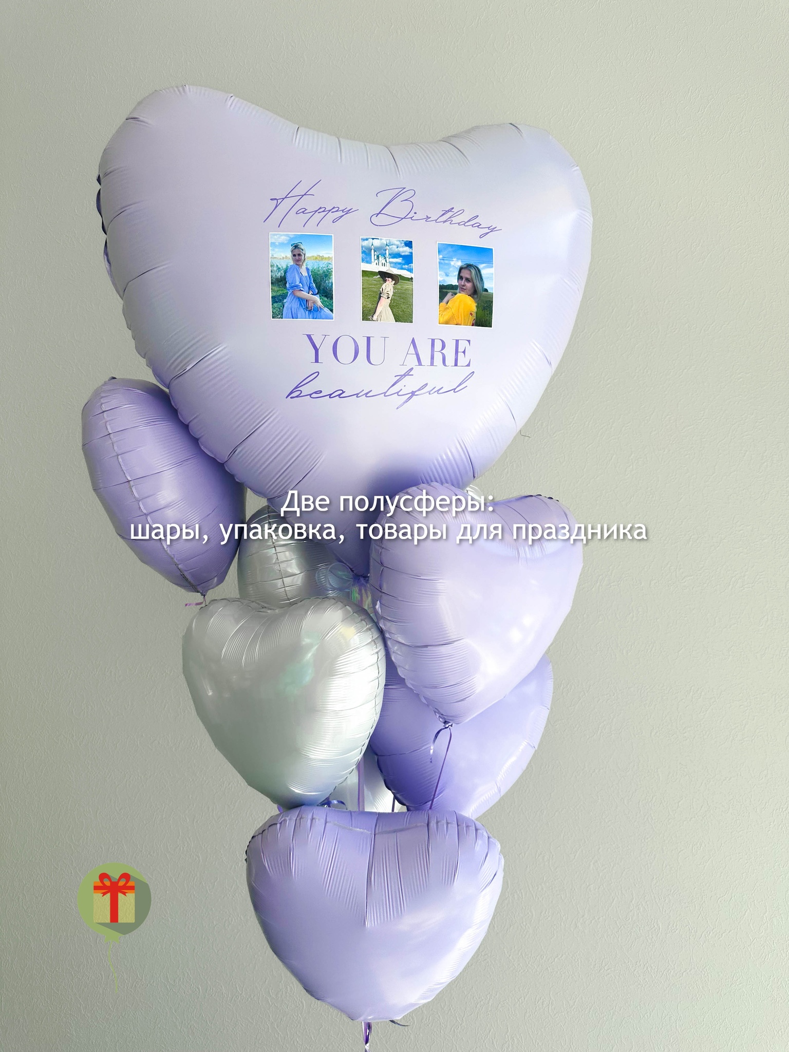 Фонтан из 9 фольгированных сердец: сердце 60 см+ наклейки и фото и 8 сердец 45 см. Грузики и пакеты включены в стоимость.