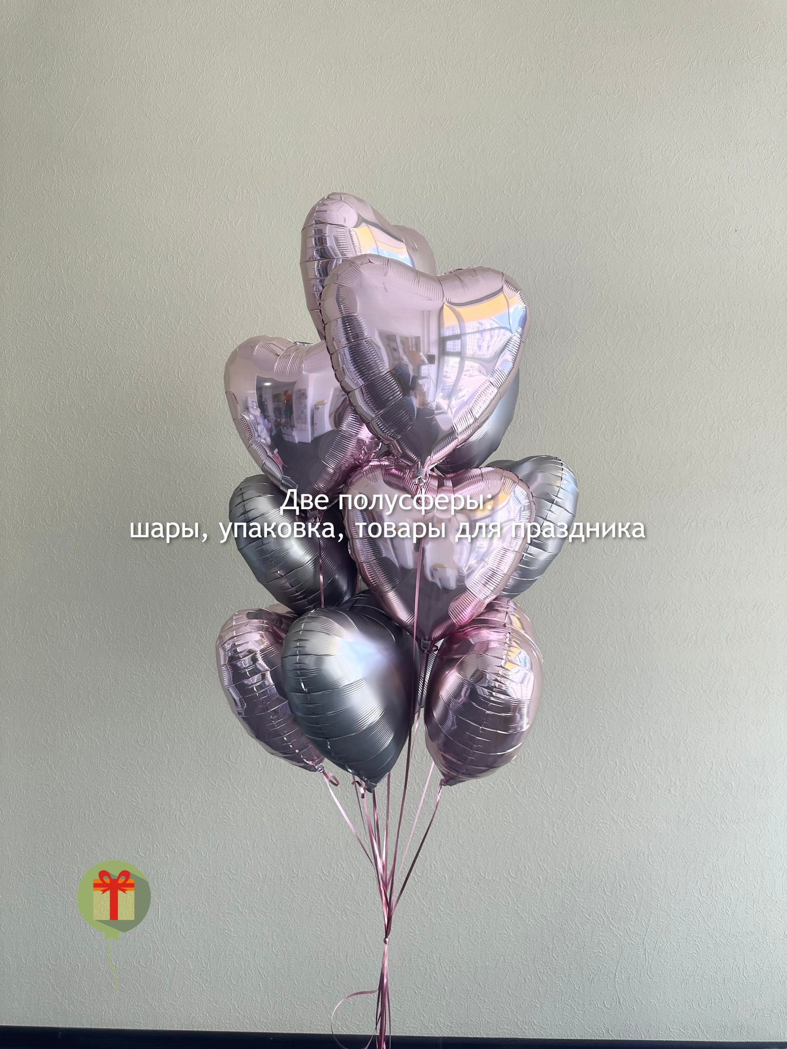 Фонтан из 10 фольгированных сердец 45 см. Грузики и пакеты включены в стоимость.