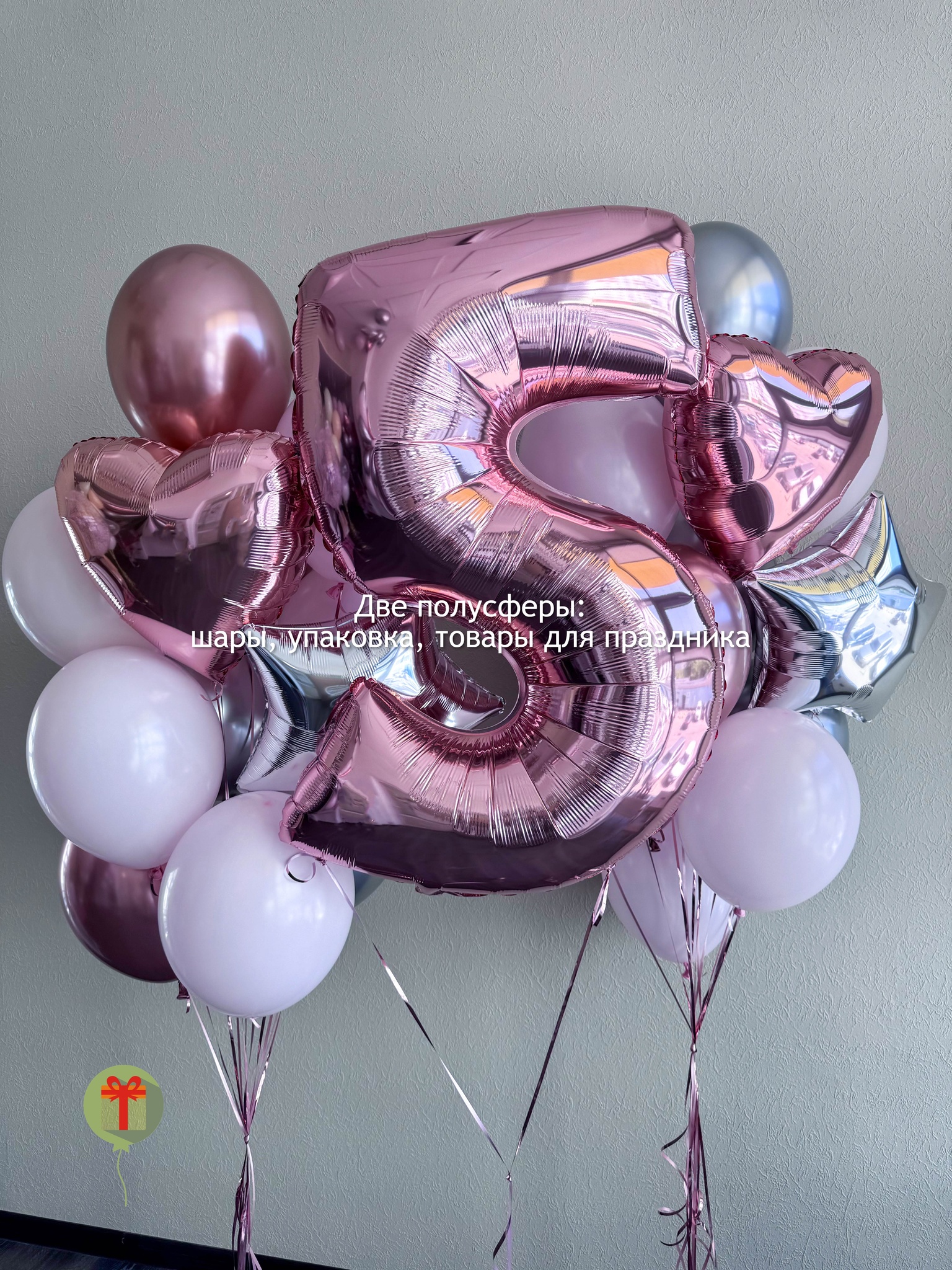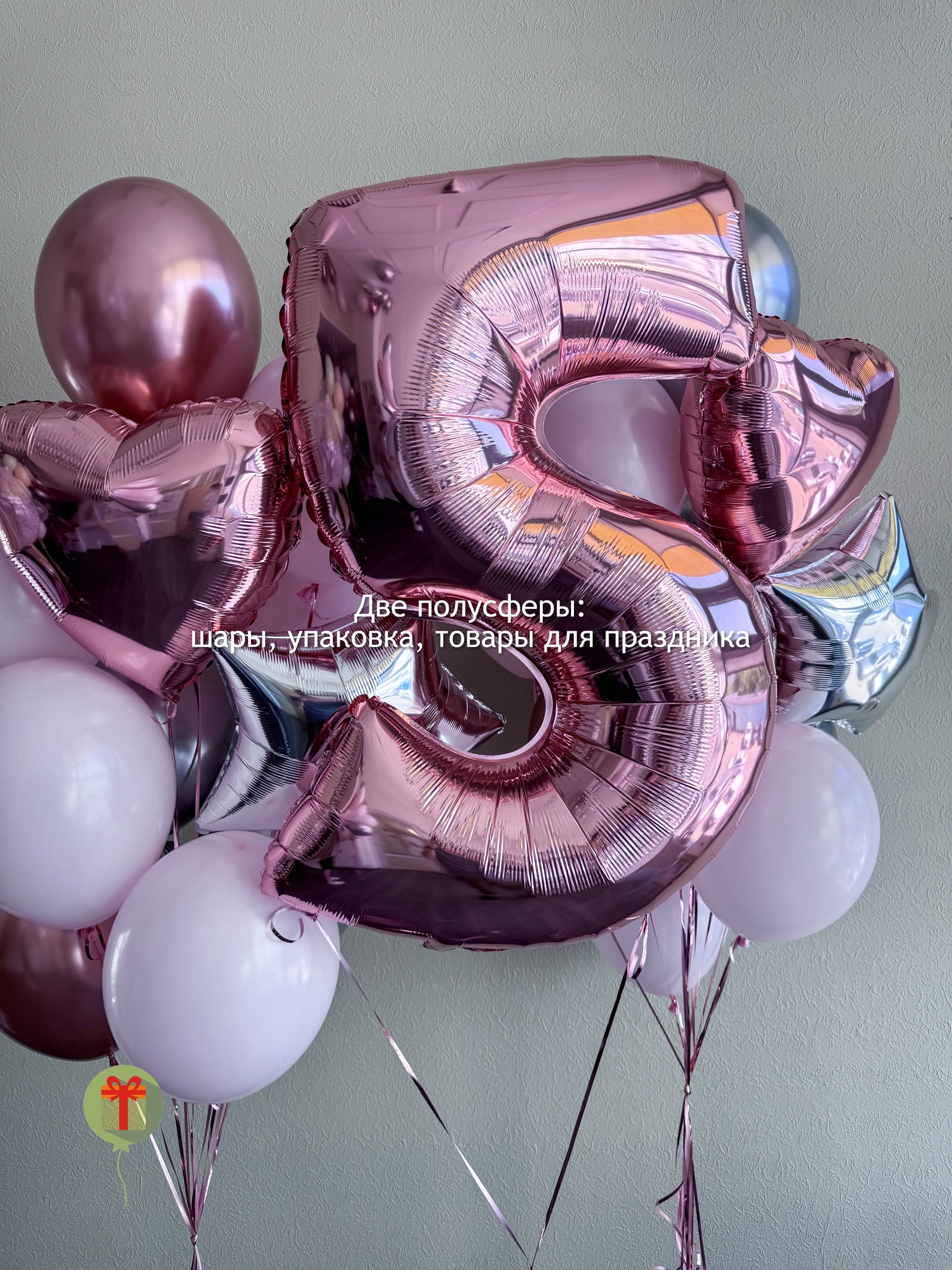 Эффектный набор с фольгированной цифрой 102 см и двумя фонтанами по 10 шаров, 2 фольгированных сердца 45 см, 3 шара хром и 5 шаров пастель, грузик и пакет входят в стоимость.