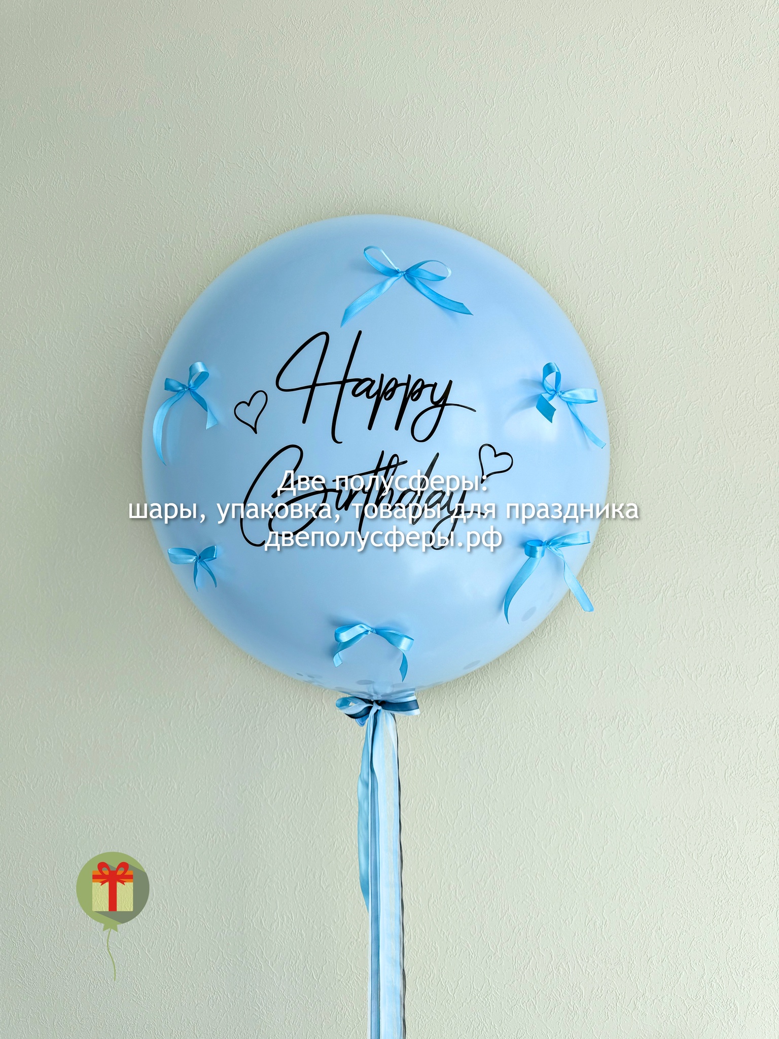 Латексный шар 60 см с наклейкой, декорированная бантиками. Грузики и пакеты включены в стоимость.