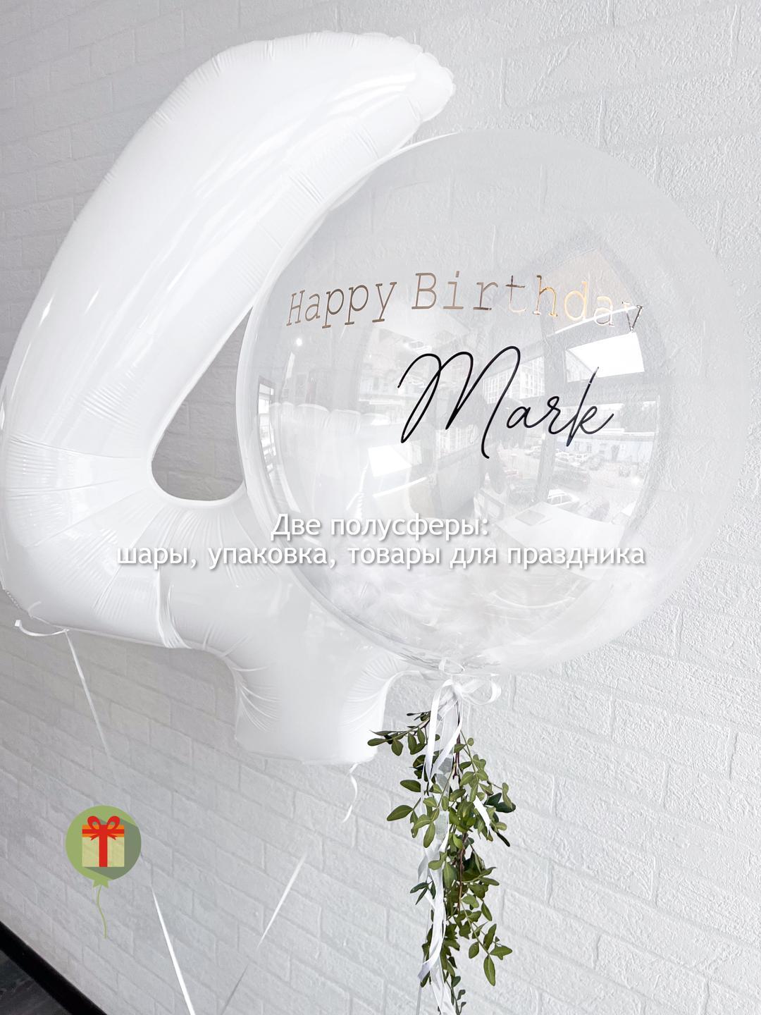 Большая цифра 102 см и большой шар бабл 60 см перьями+ надпись и живой веточкой. Грузики и пакеты включены в стоимость.