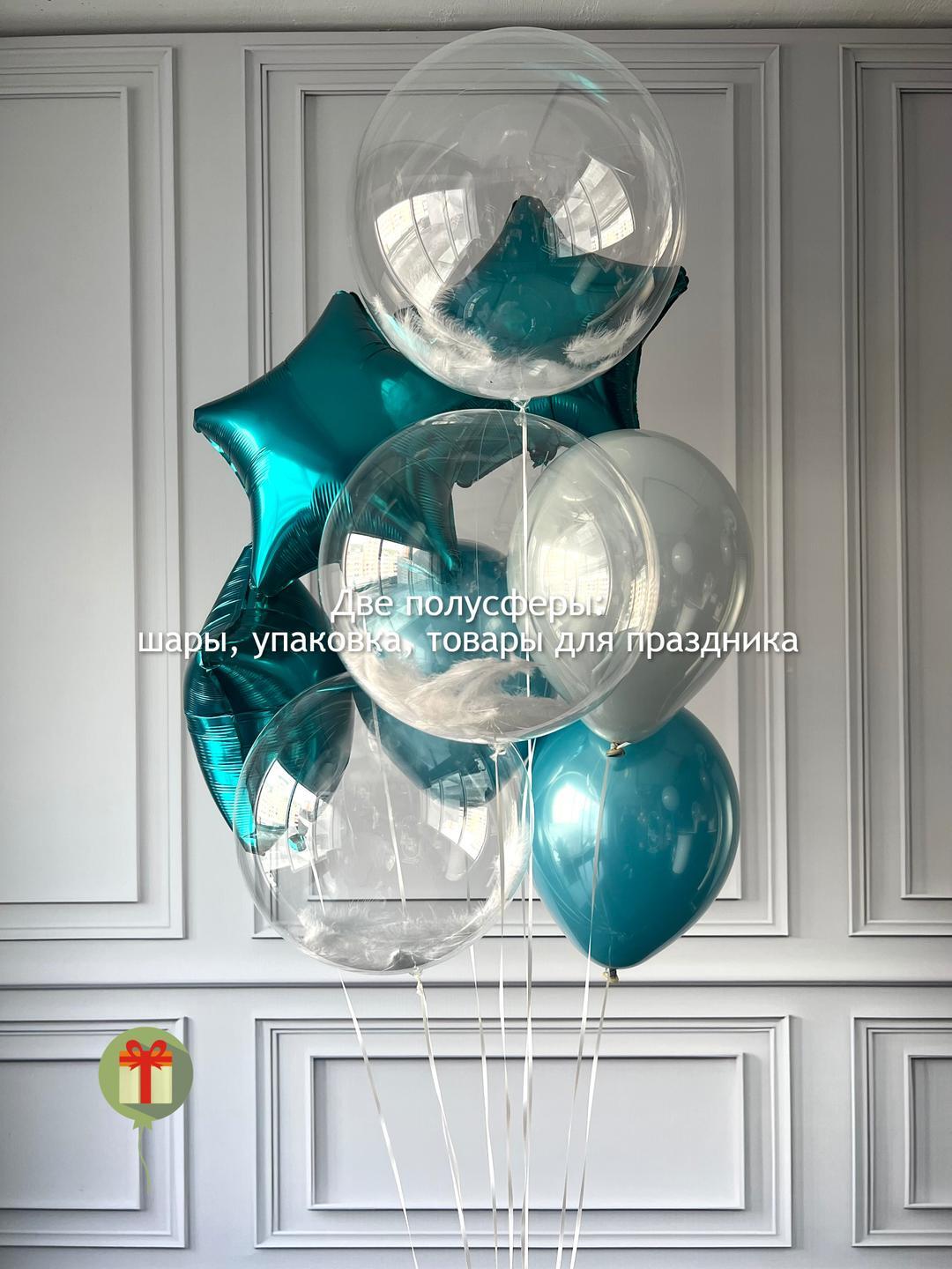 Шикарный фонтан из 9 шаров.3 фольгированных звезды 45 см, 3 шара бабл с перьями, 3 шар в шаре пастель без рисунка, грузик, пакет