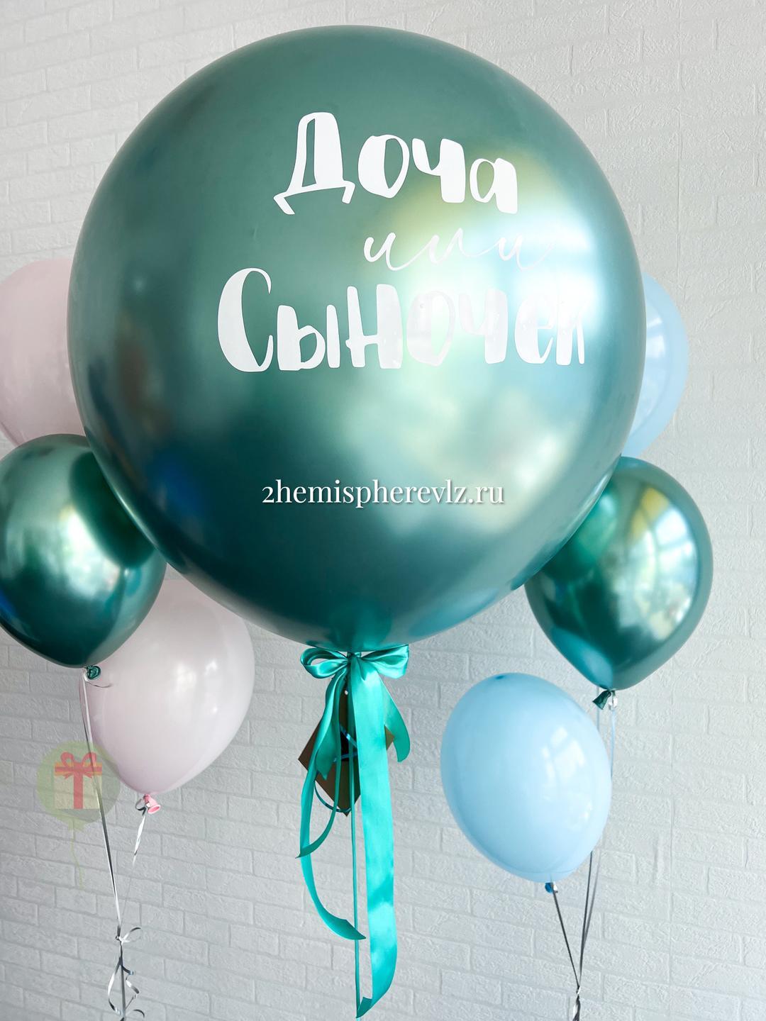 Красивый набор в ярких бирюзово-белых оттенках точно понравится вам и вашим гостям! В наборе: Большой шар 60 см хром с надписью и 2 фонтана по 3 шара ( 2 шара пастель 35 см и 1 шар хром 35 см). Грузики и пакеты включены в стоимость