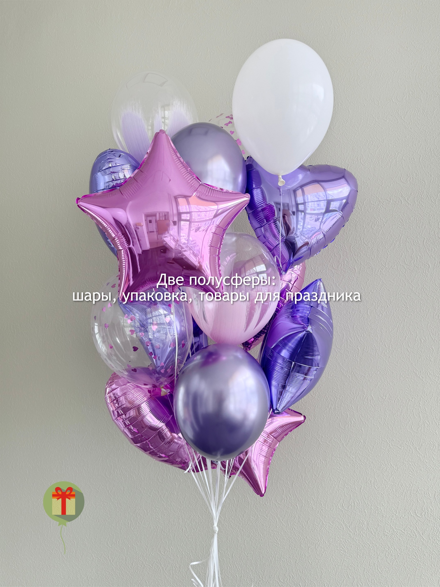 Стильный фонтан из 15 шаров, в составе: 6 фольгированных сердец/звёзд 45 см, 3 шара хром, 4 шара браш и 2 шара пастель, грузик и пакет входят в стоимость