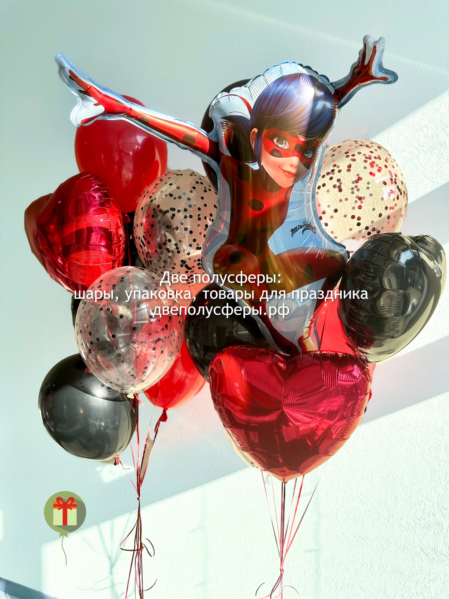 Яркий набор в составе :  фольгированная фигура, 4 фольгированных сердца 45 см, 4 шара с конфетти и 6 шаров пастель, грузик и пакет входят в стоимость.