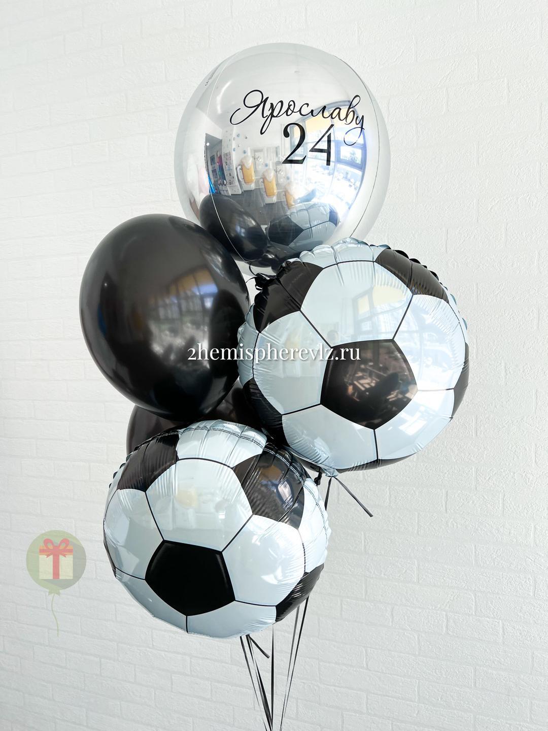 Фонтан из 5 шаров: фольгированная сфера 45 см с надписью, 2 фольгированных шара 45 см и 2 шара пастель. Грузики и пакеты включены в стоимость.