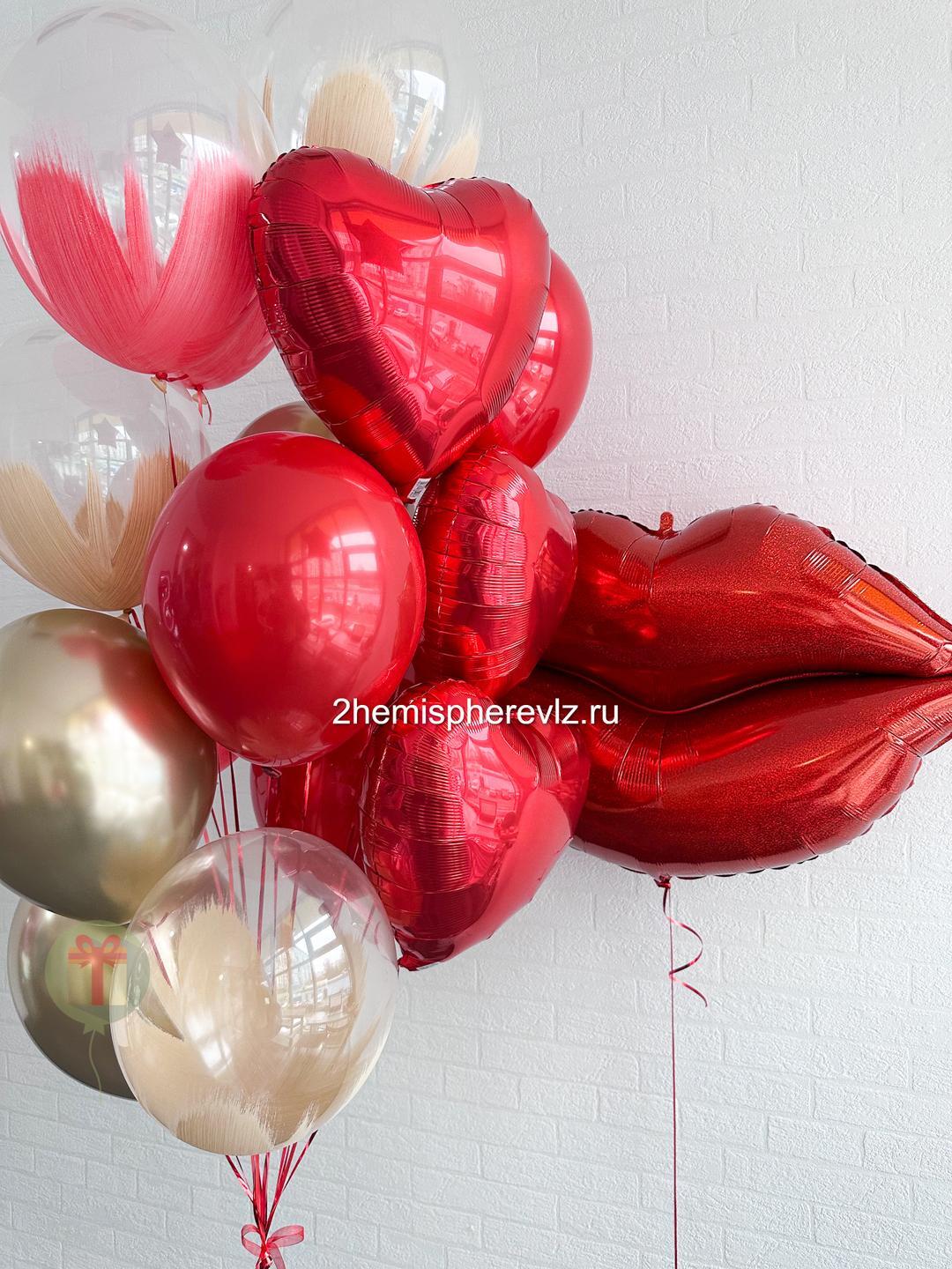 Для стильной и яркой девушки! в составе: фигура губы и фонтан из 15 шаров (5 шаров браш, 3 фольгированных сердца 45 см, 4 шар в шаре, 3 шара хром). Грузики и пакеты включены в стоимость.