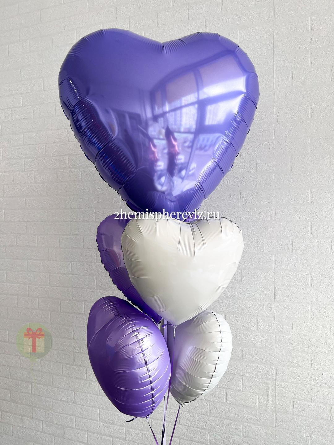 Нежный фонтан из 5 шаров в лавандовых оттенках, не оставит равнодушной нежную натуру😇 В составе: сердце фольгированное 60 см и 4 фольгированных сердца 45 см. Грузик и пакет включены в стоимость.