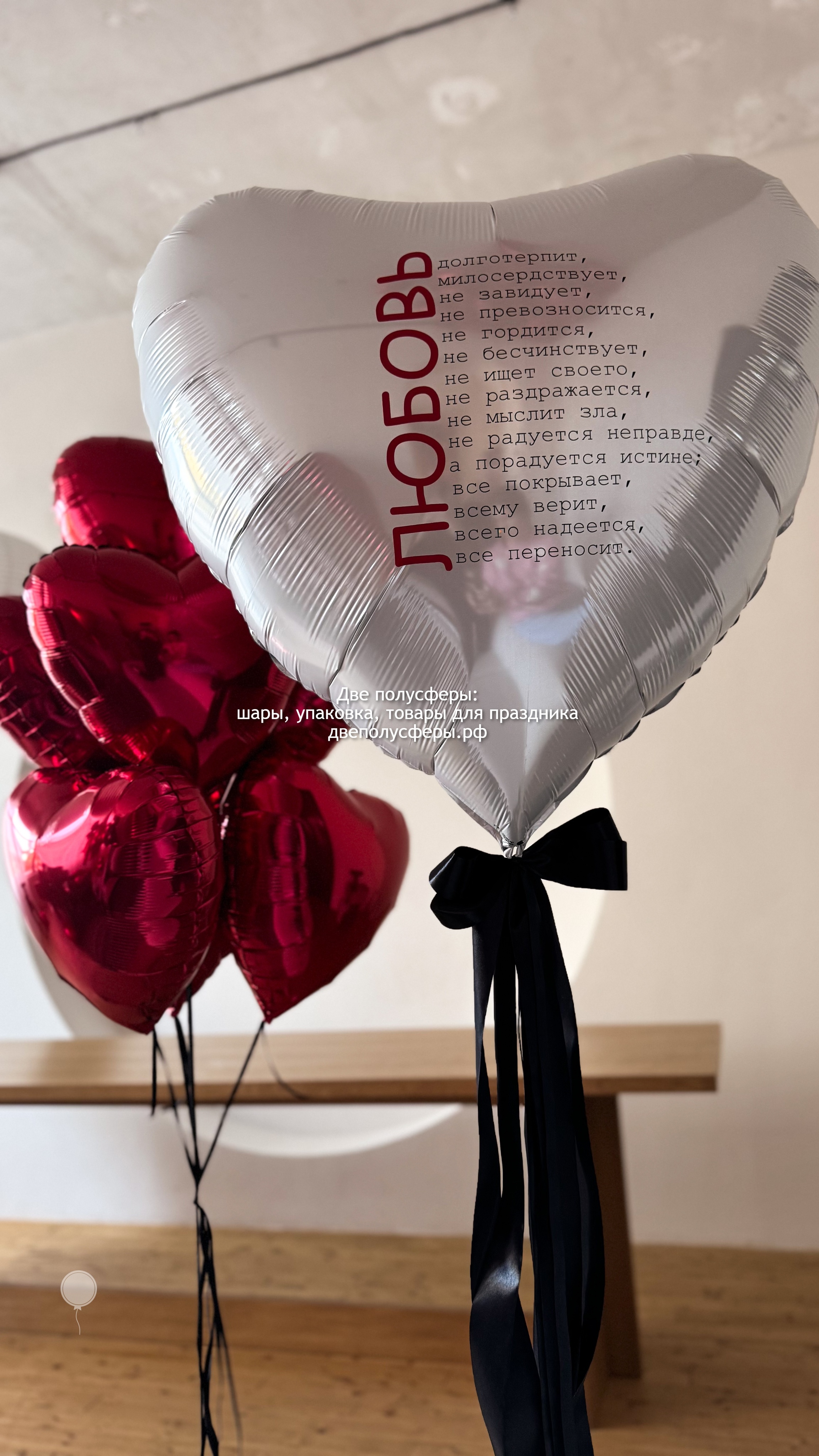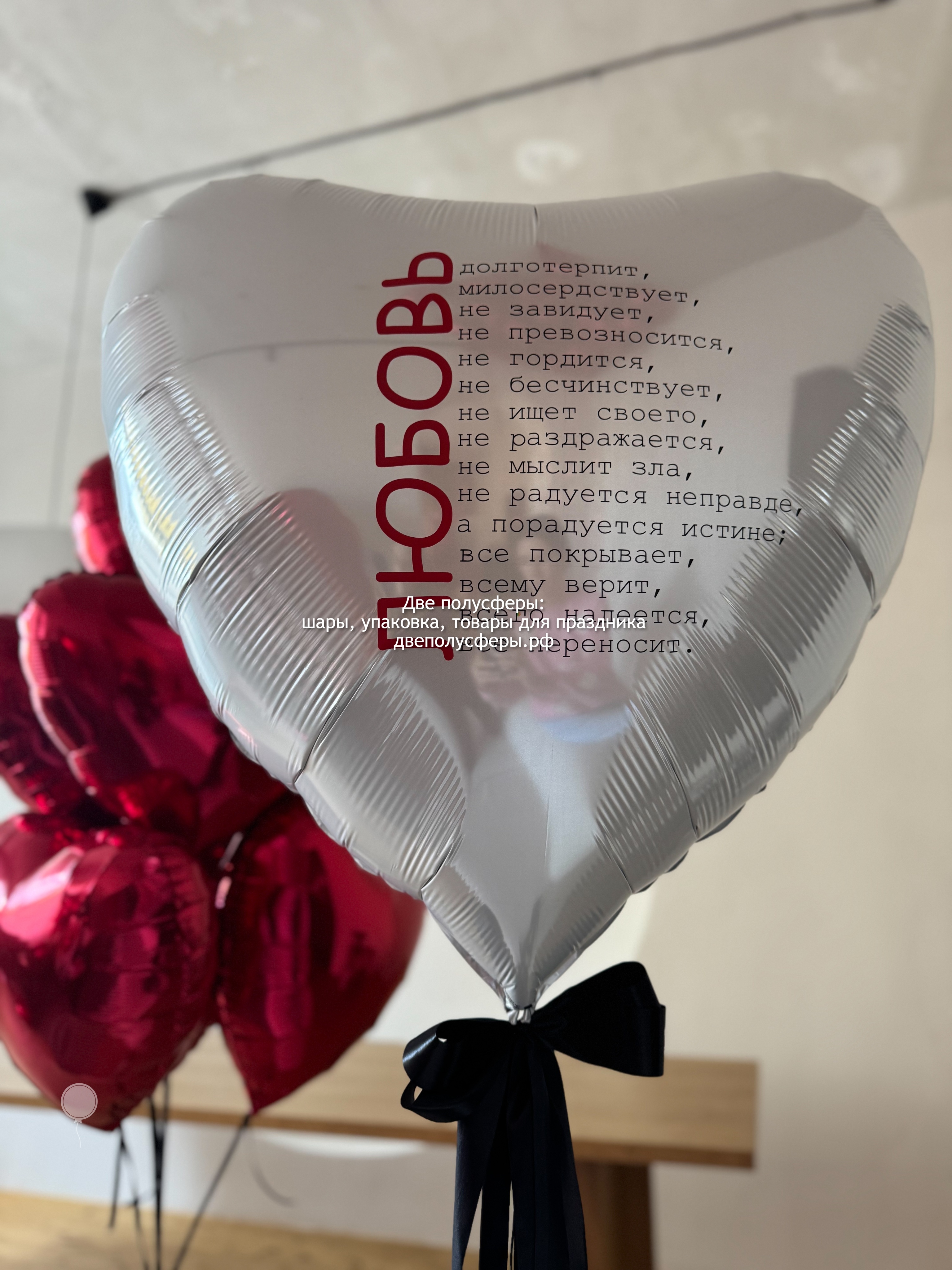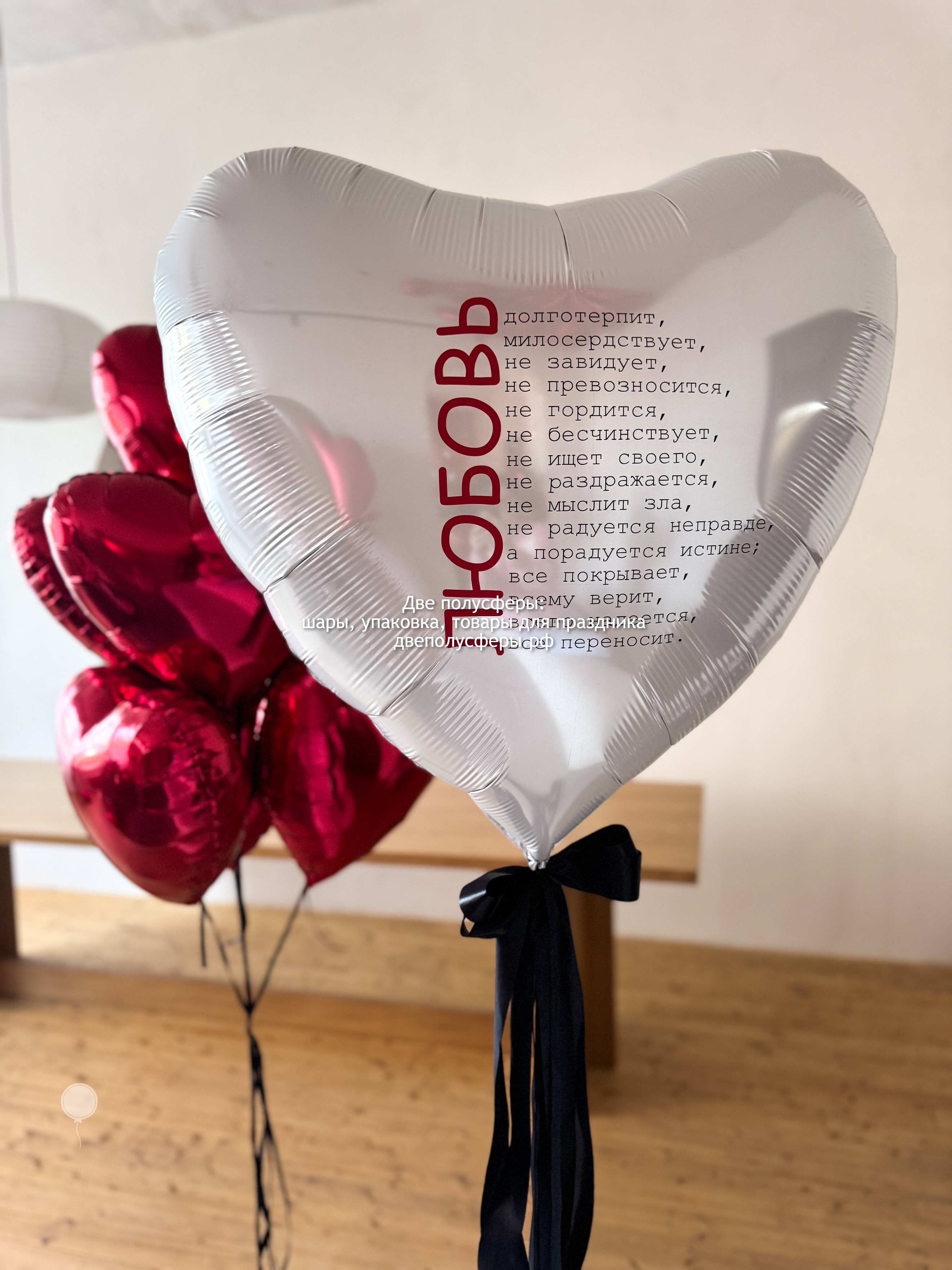 Сердце 90 с с надписью, фонтан из 7 сердец 45 см, грузик и пакет входят в стоимость