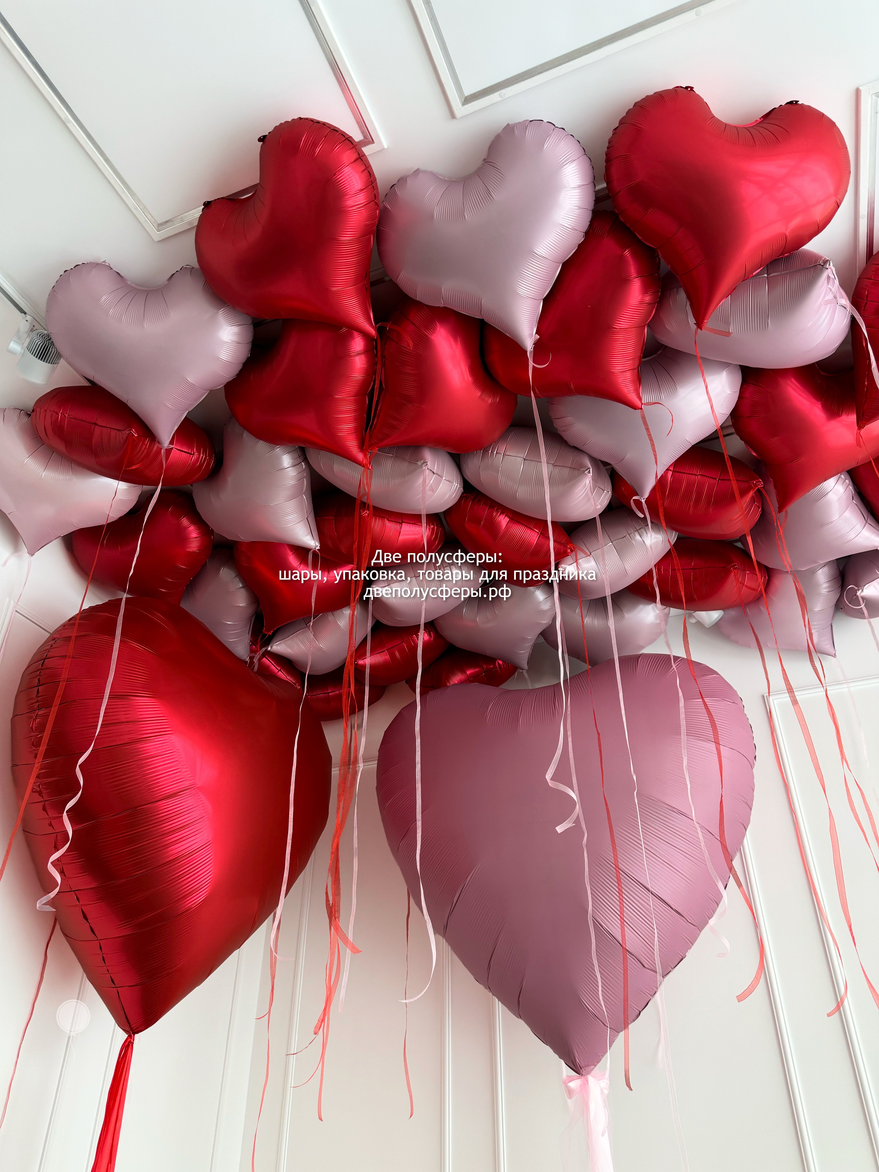 2 сердца 150 см и 30 фигурных шаров под потолок, грузики и пакеты