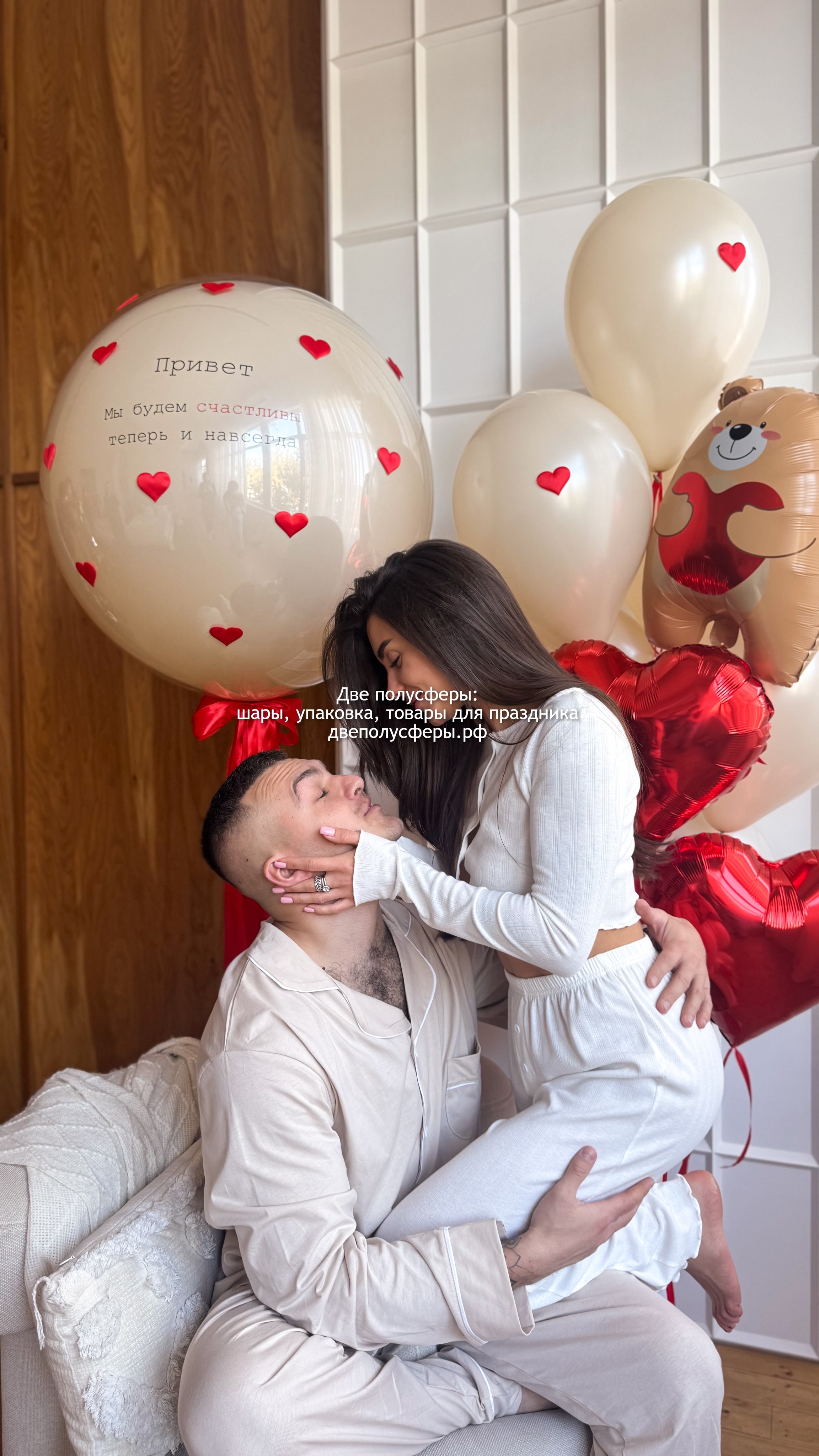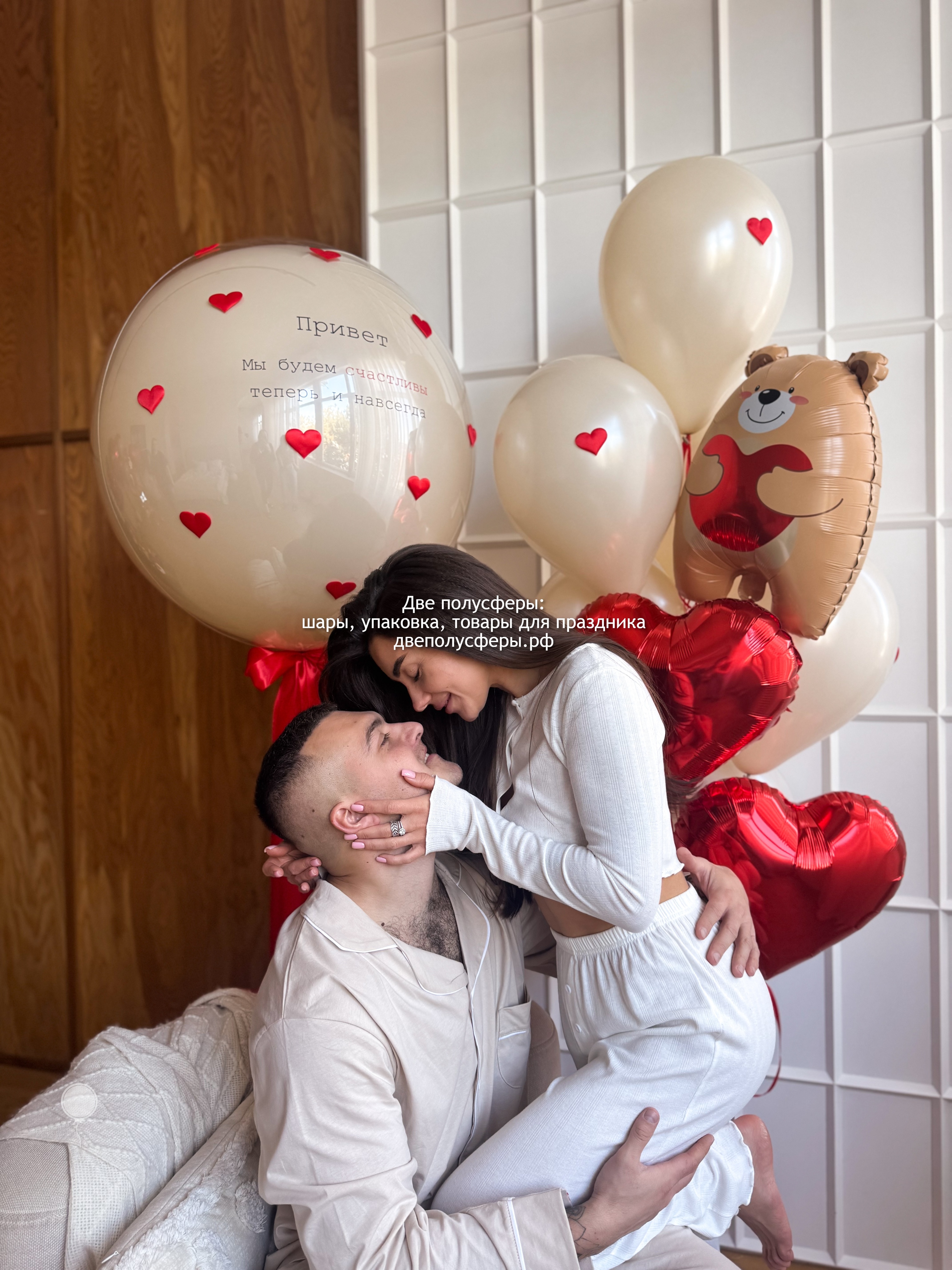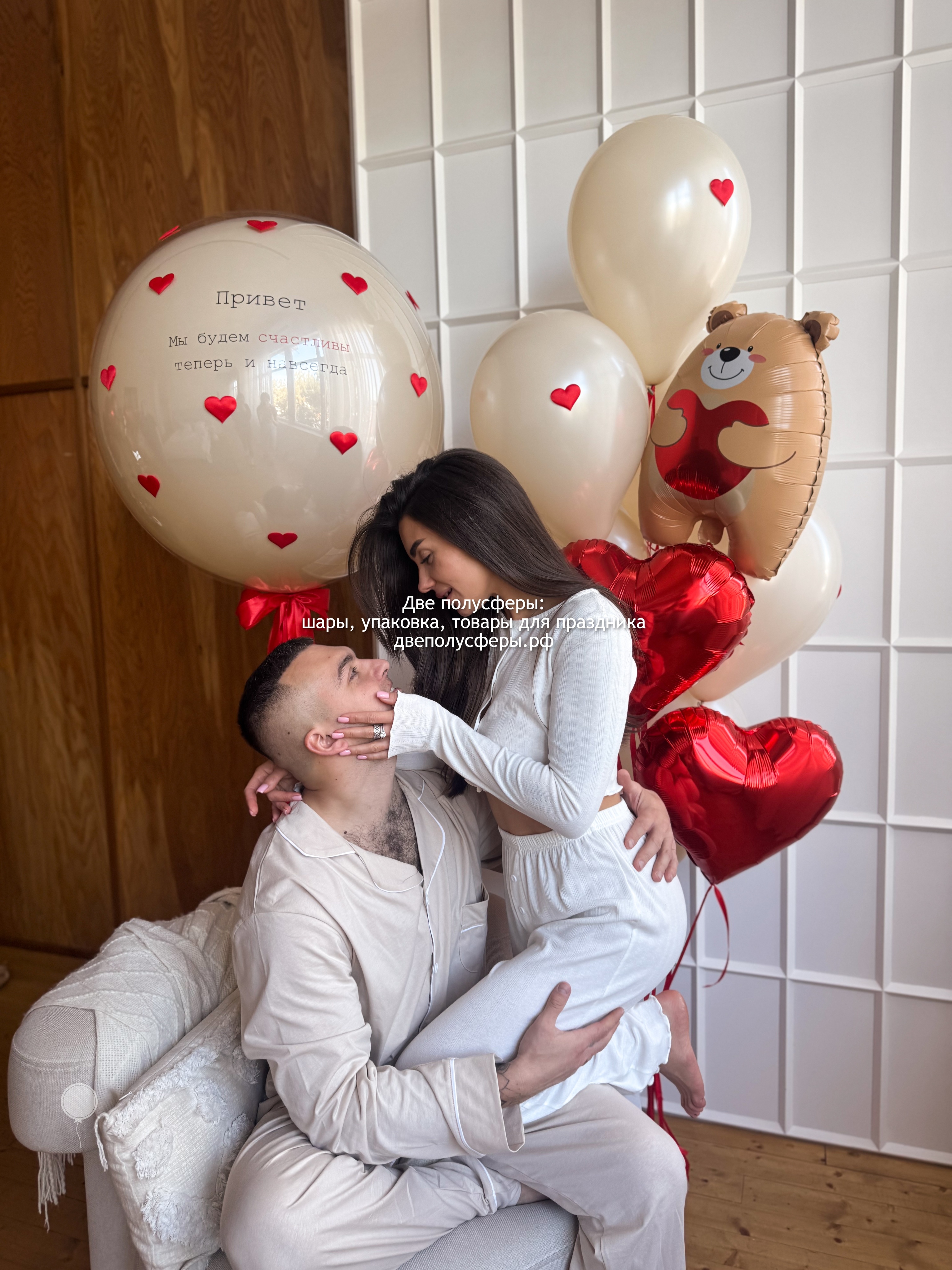 Стеклянный шар 60 см с надписью, фонтан из 6 шаров с объемными сердечками, 1 сердца 45 см с надписью, 1 сердца 45 см без надписи, фигурки мишки, грузики и пакеты входят в стоимость