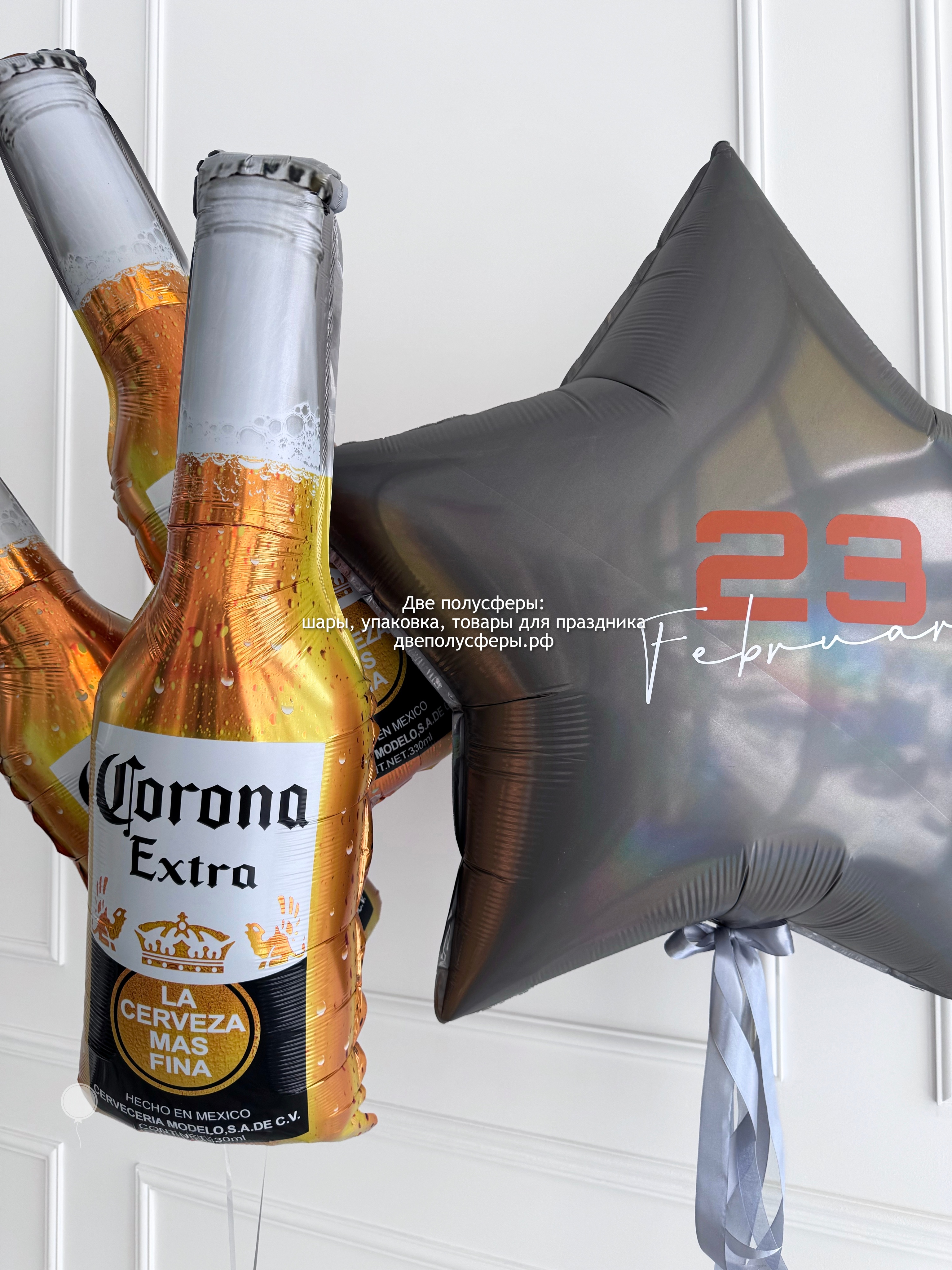 3 фольгированные фигуры бутылки пива, большая звезда 90 см с надписью. Грузики и пакеты входят в стоимость
