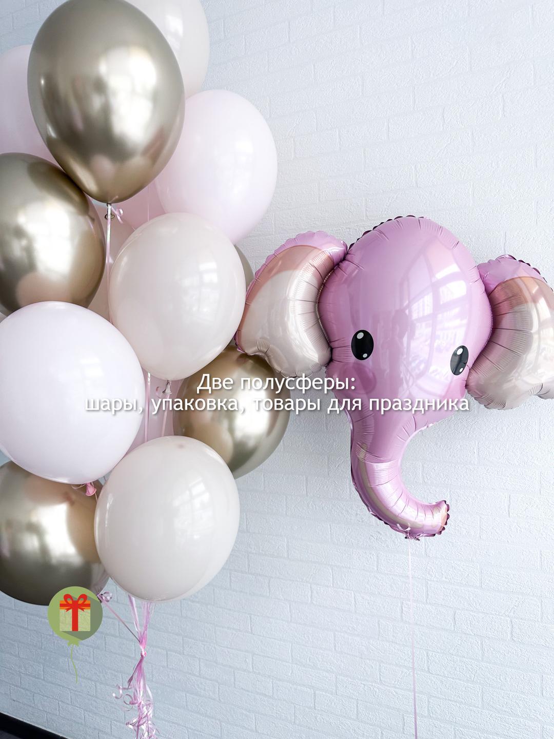 Фонтан из 13 шаров: 5 шаров хром и 8 шаров пастель и фольгированная фигурка слоника. Грузики и пакеты включены в стоимость.