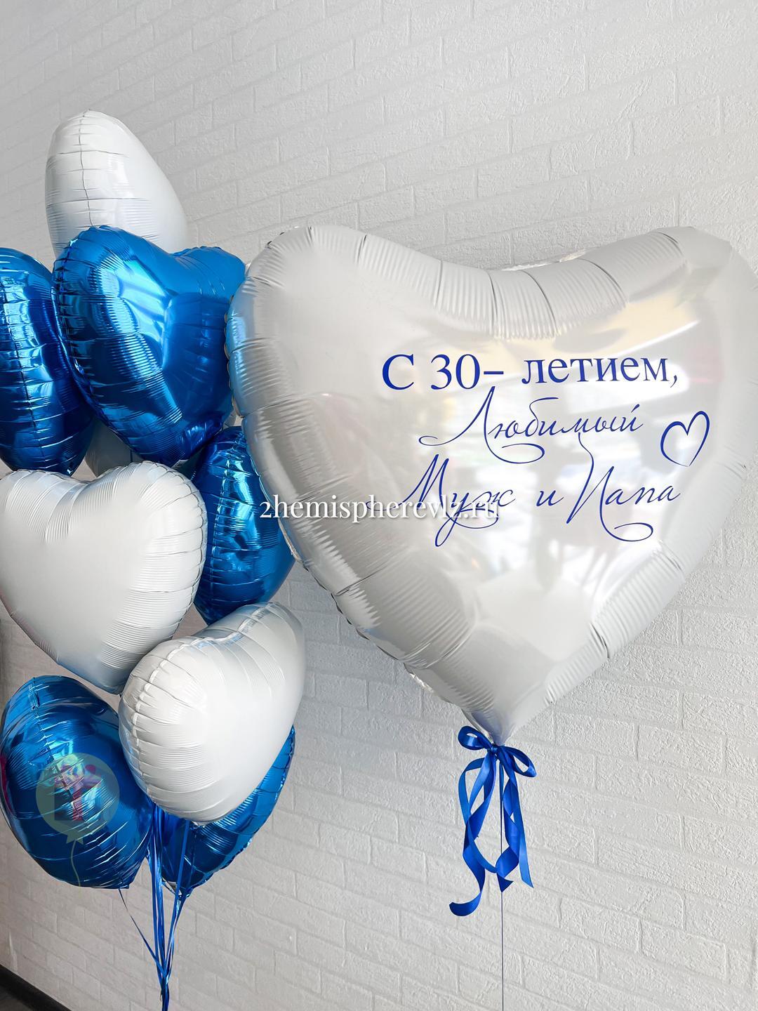Большое сердце 80 см с надписью, фонтан из 10 фольгированных сердец 45 см, грузики, пакеты входят в стоимость