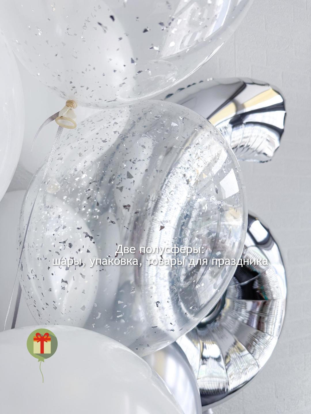 Фонтан из 8 шаров пастель, 3 шаров хром и 3 шаров с конфетти, цифра из фольги 66 см, грузики, пакеты