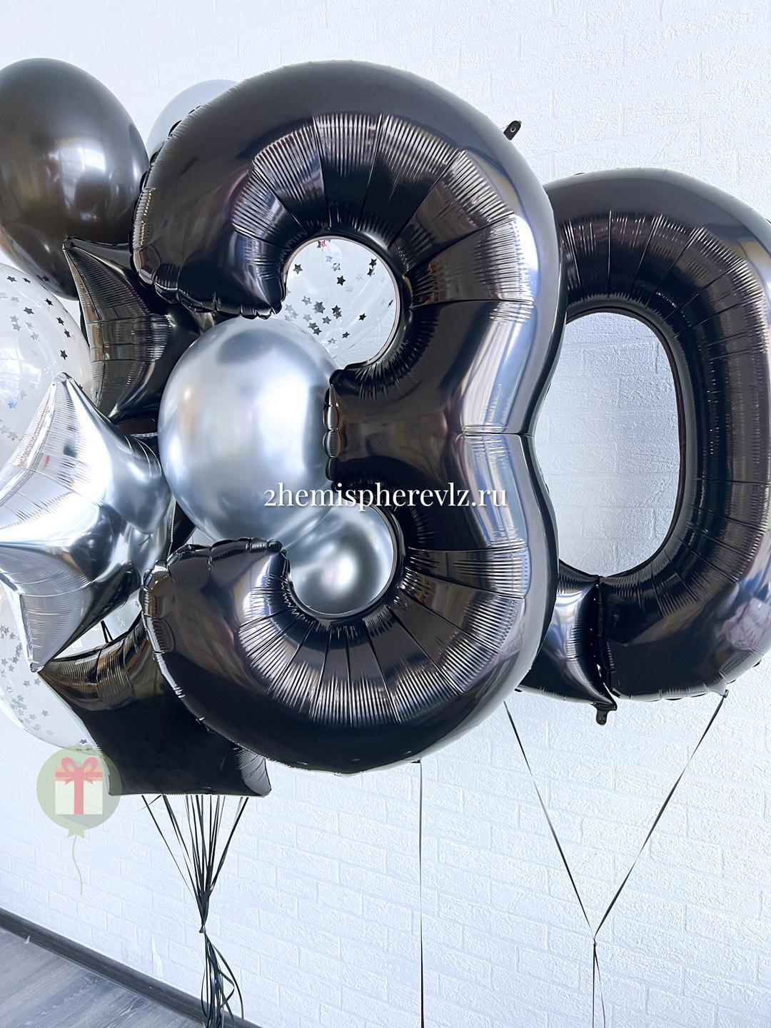 Пышный фонтан из 12 шаров и цифры 102 м,  3 фольгированные звезда 45 см, шары с конфетти  4 шт, хром шары 2 шт и 3 шара хром, грузики и пакеты входят в стоимость