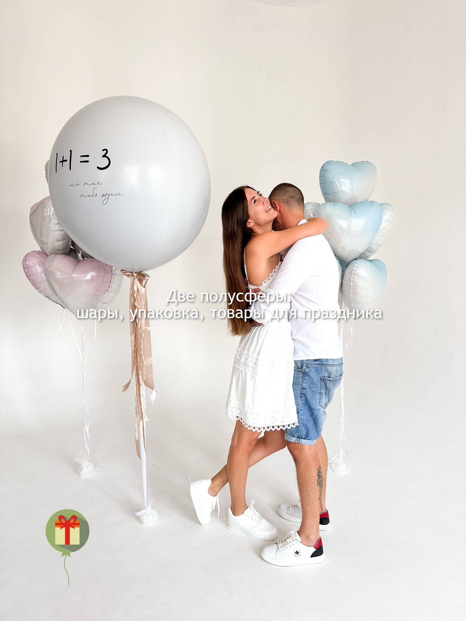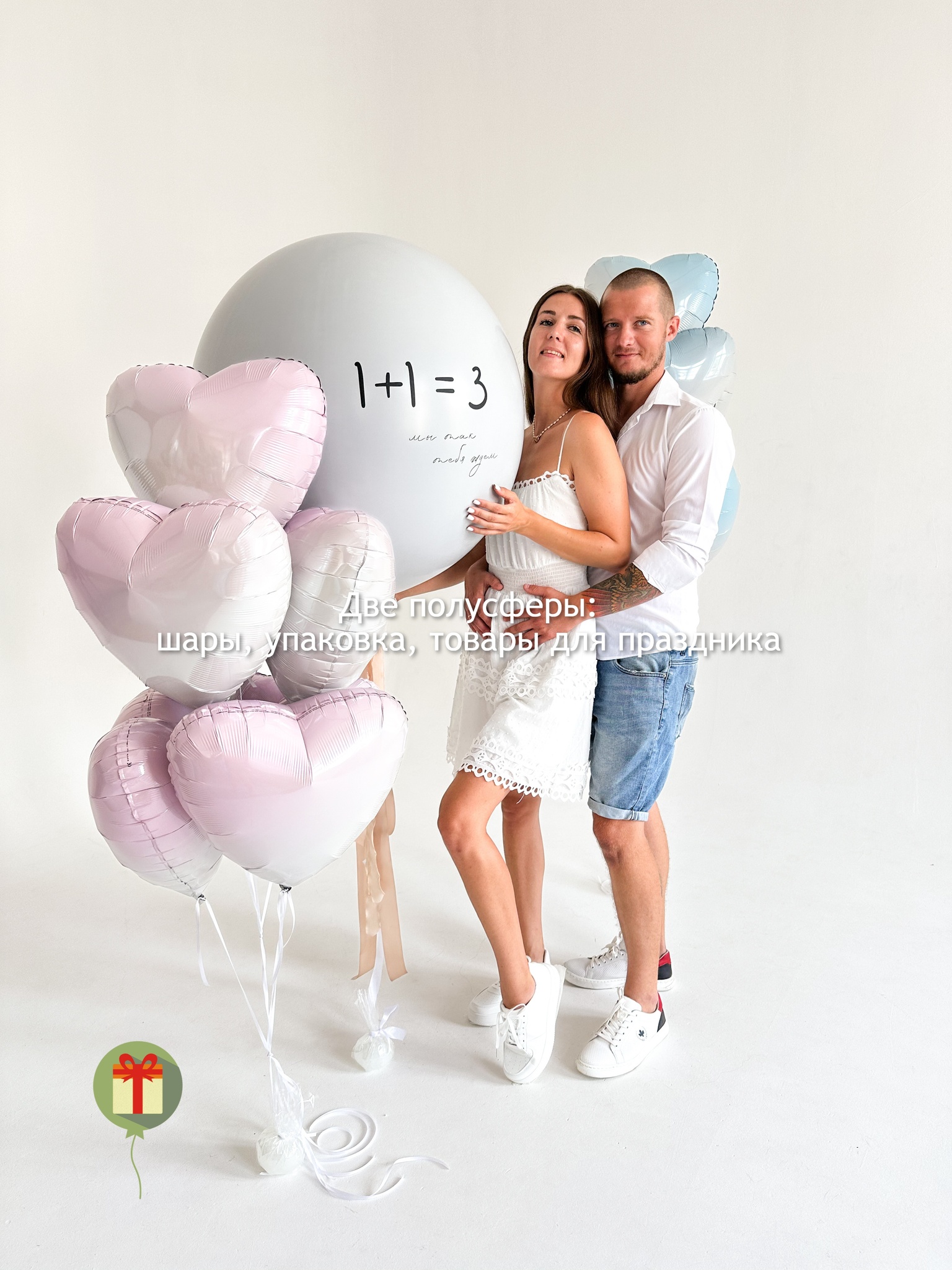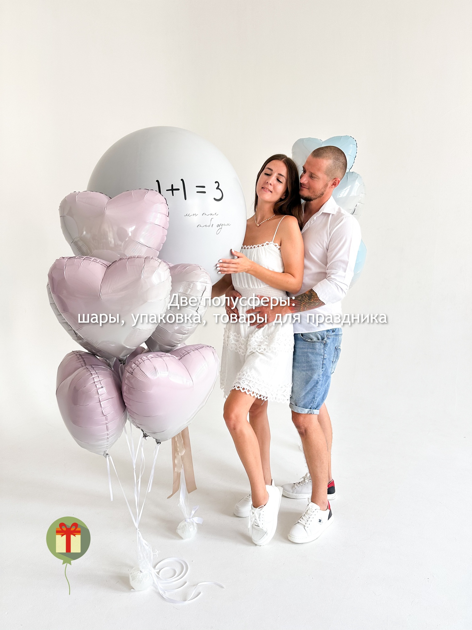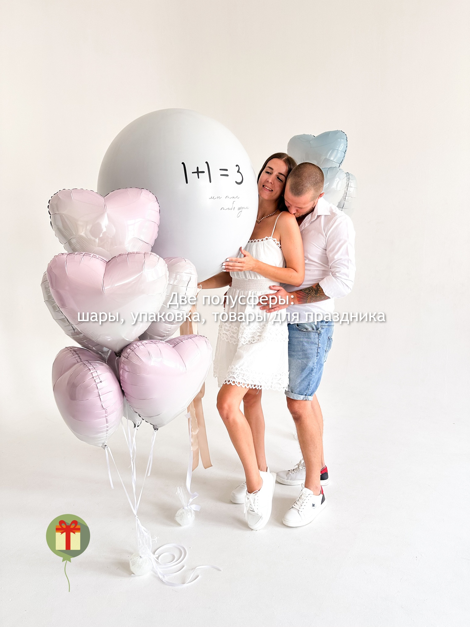 Латексный шар 60 см с индивидуальной надписью и конфетти внутри, 2 фонтана по 7 фольгированных сердец 45 см, грузик и пакет входят в стоимость.