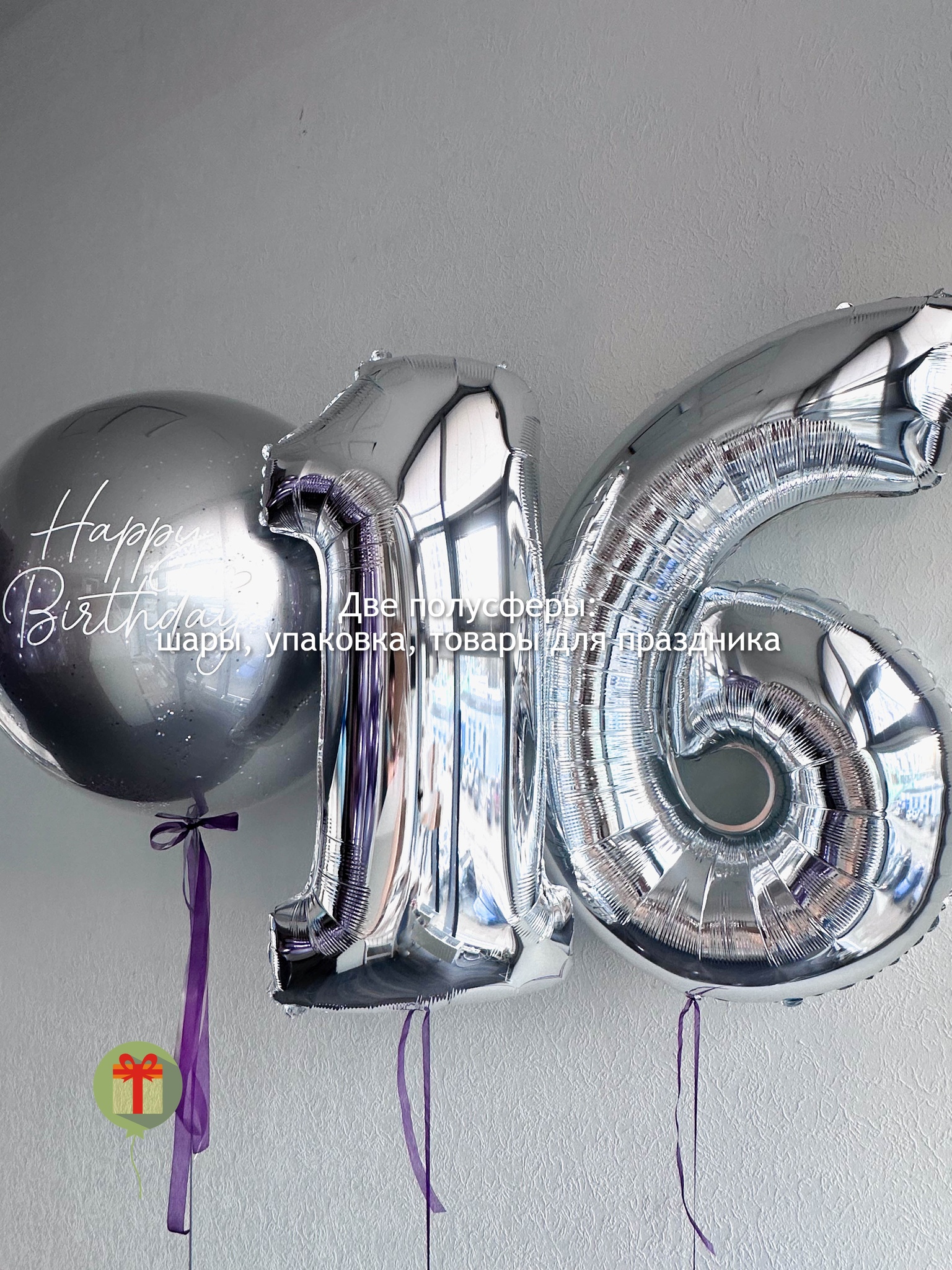 Сфера дабл бабл хром 60 см+ надпись и 2 цифры 102 см. Грузики и пакеты включены в стоимость.