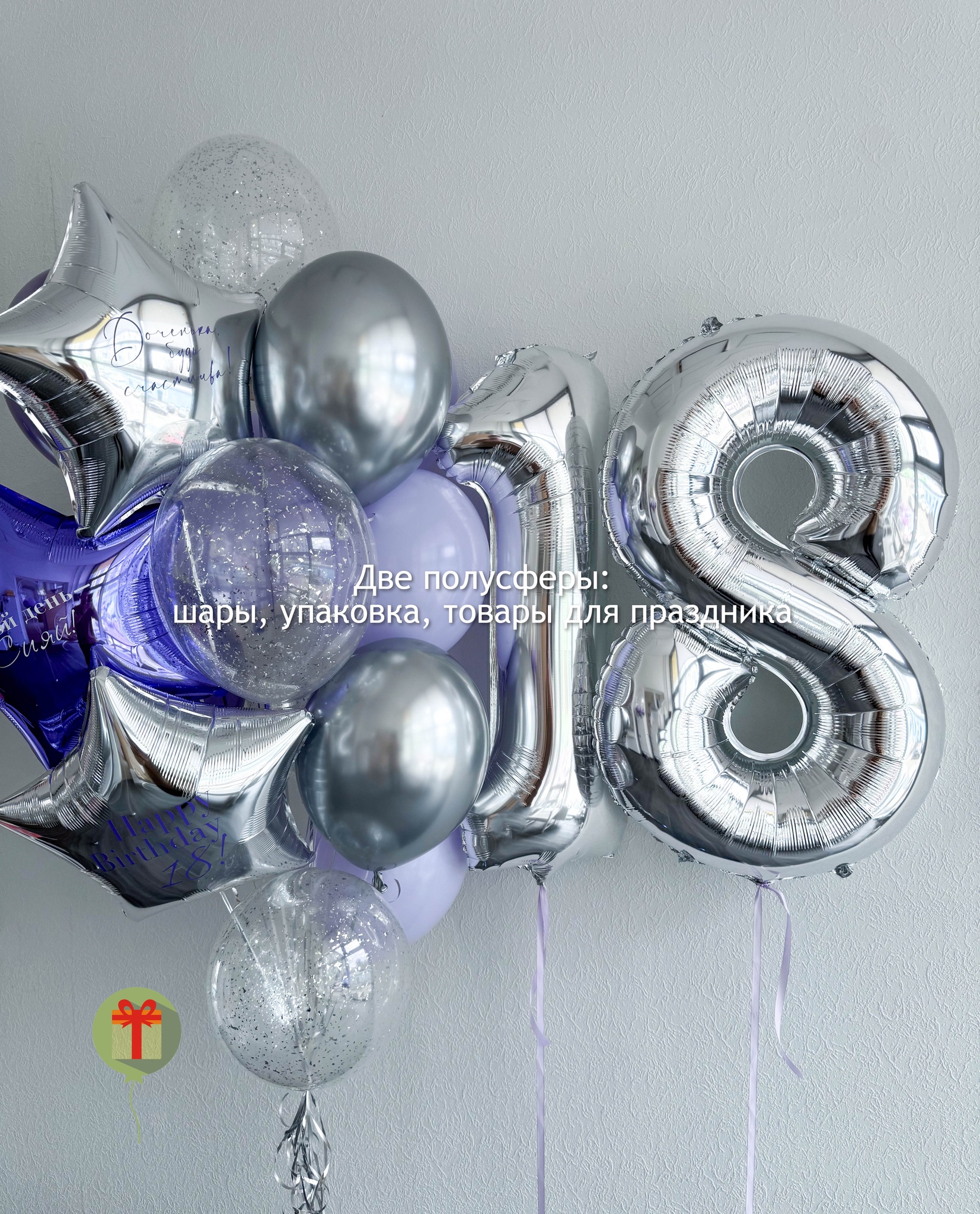Пышный фонтан из 15 штук: 3 звезды 45 см+ надписи, 3 шара с конфетти, 4 шара хром и 5 шаров пастель, а так же 2 фольгированные цифры 102 см. Грузики и пакеты включены в стоимость.