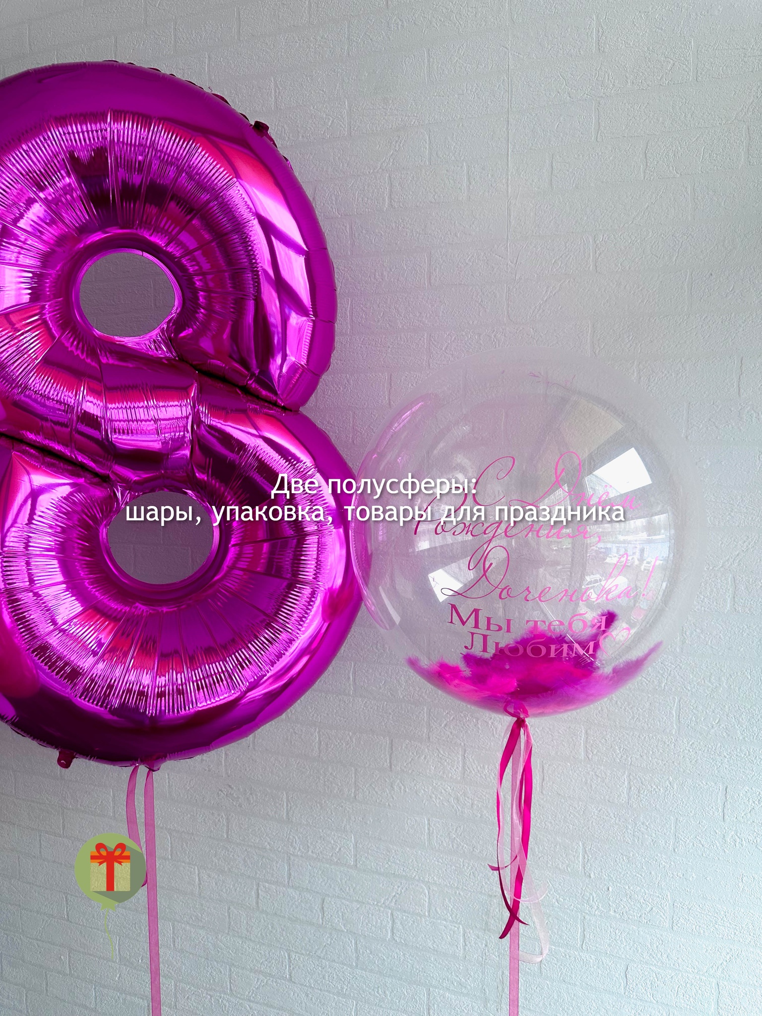 Фольгированная цифра 102 см и сфера 50 см с перьями+ наклейка. Грузики и пакеты включены в стоимость.