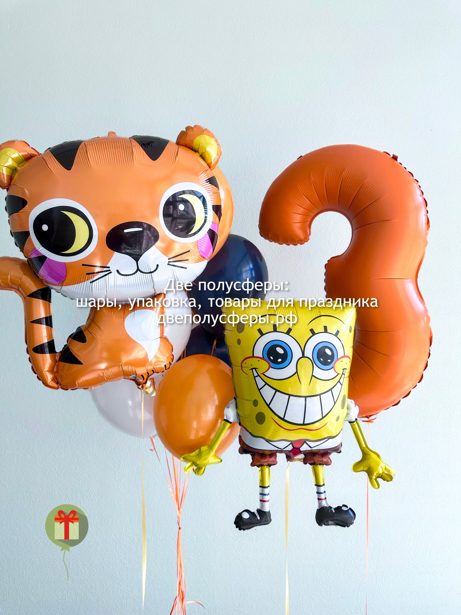 Фольгированная цифра 102 см, 2 фигуры и фонтан из 9 шаров пастель. Грузики и пакеты включены в стоимость.