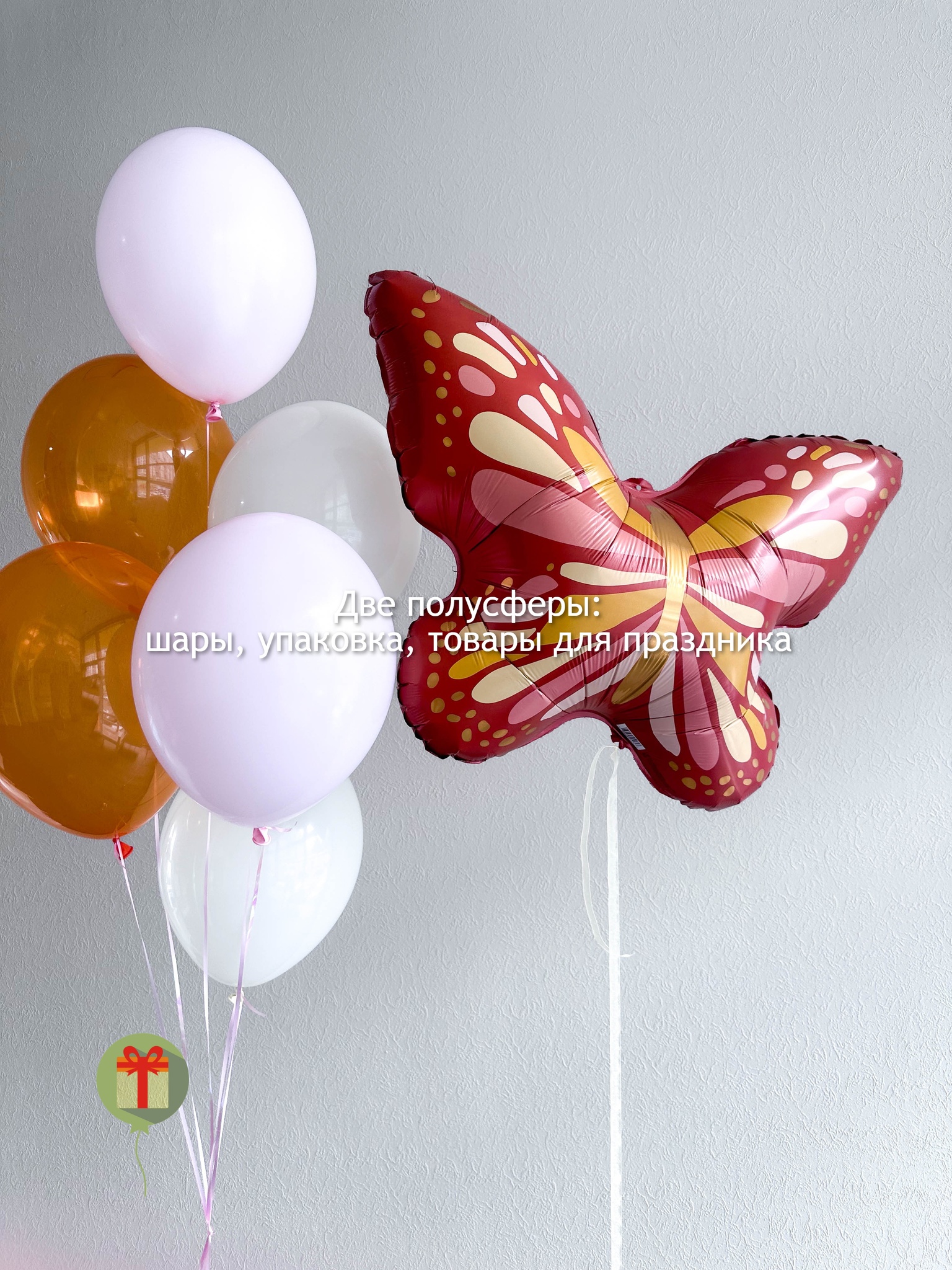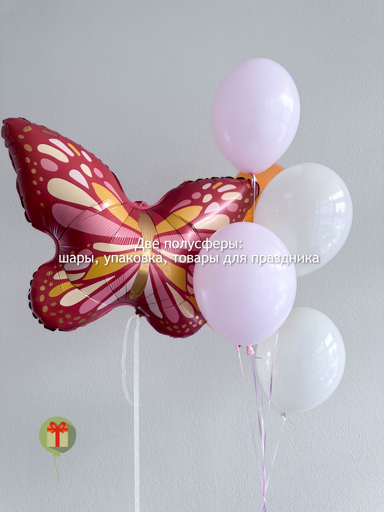 Набор с фольгированной фигуркой бабочки и фонтаном из 6 шаров пастель, грузик и пакет входят в стоимость.