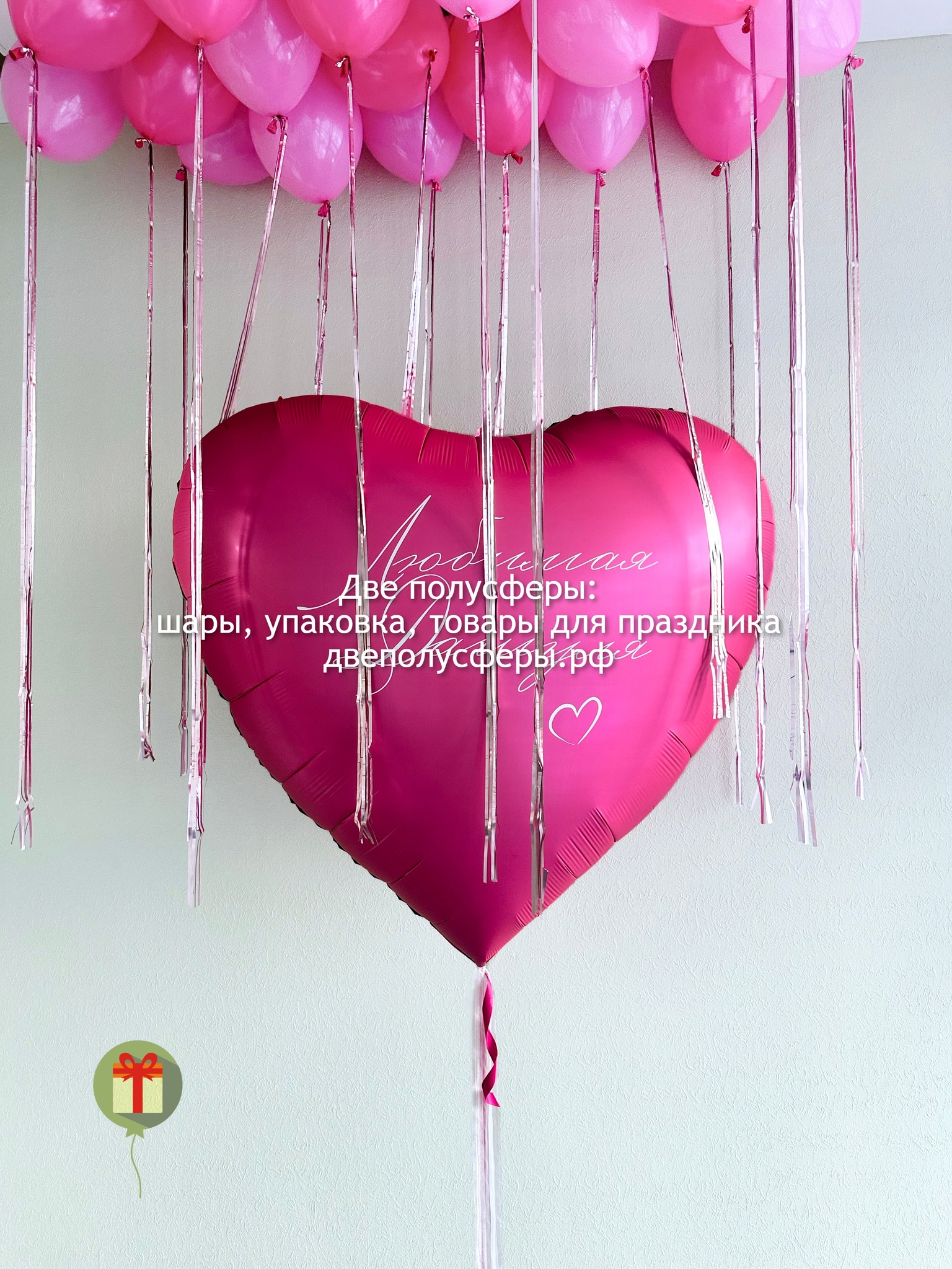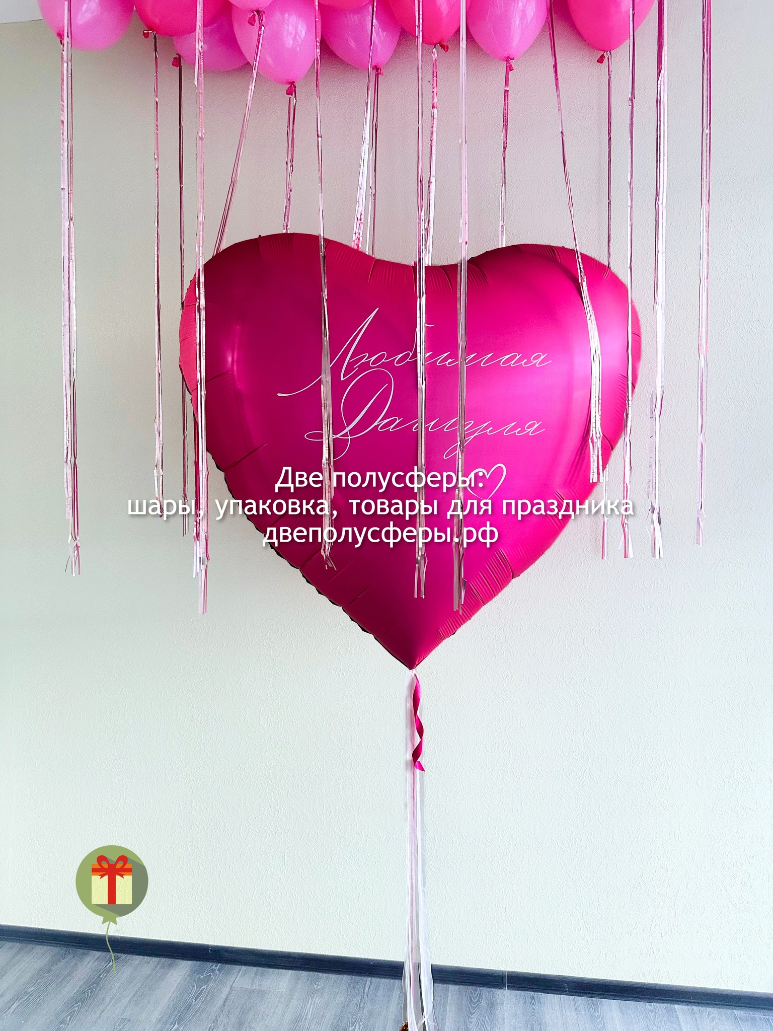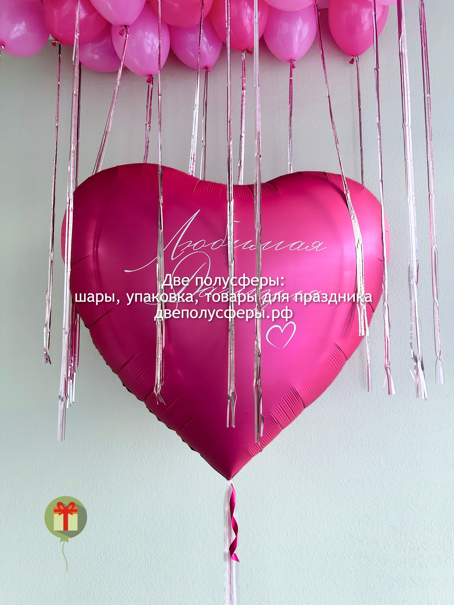 Огромное фольгированное сердце 174 см с надписью и 20 шаров пастель под потолок. Грузики и пакеты включены в стоимость.