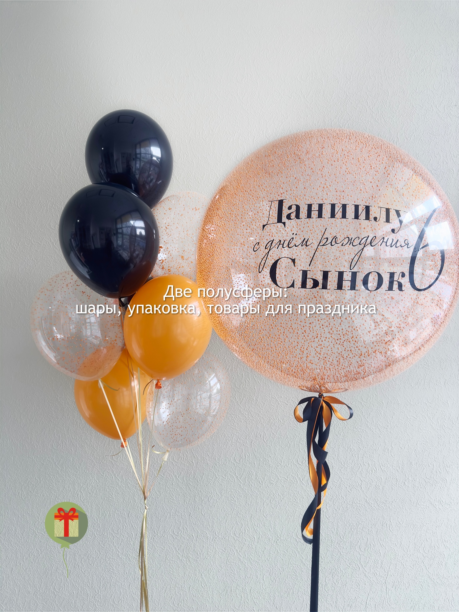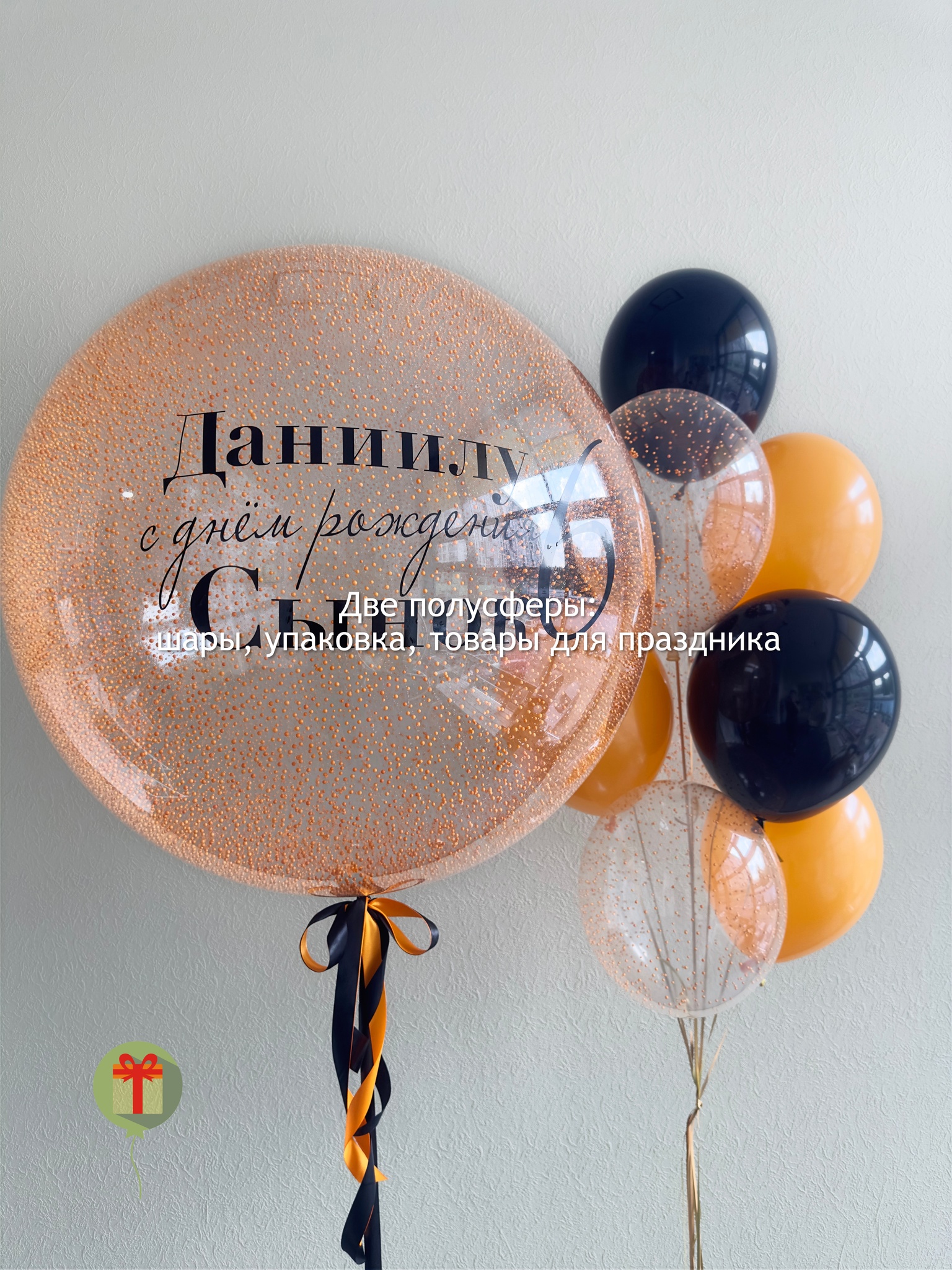 Фонтан из 10 штук: 3 шара с пенопластом и 7 шаров пастель и сфера 60 см с пенопластом+ надпись. Грузики и пакеты включены в стоимость.