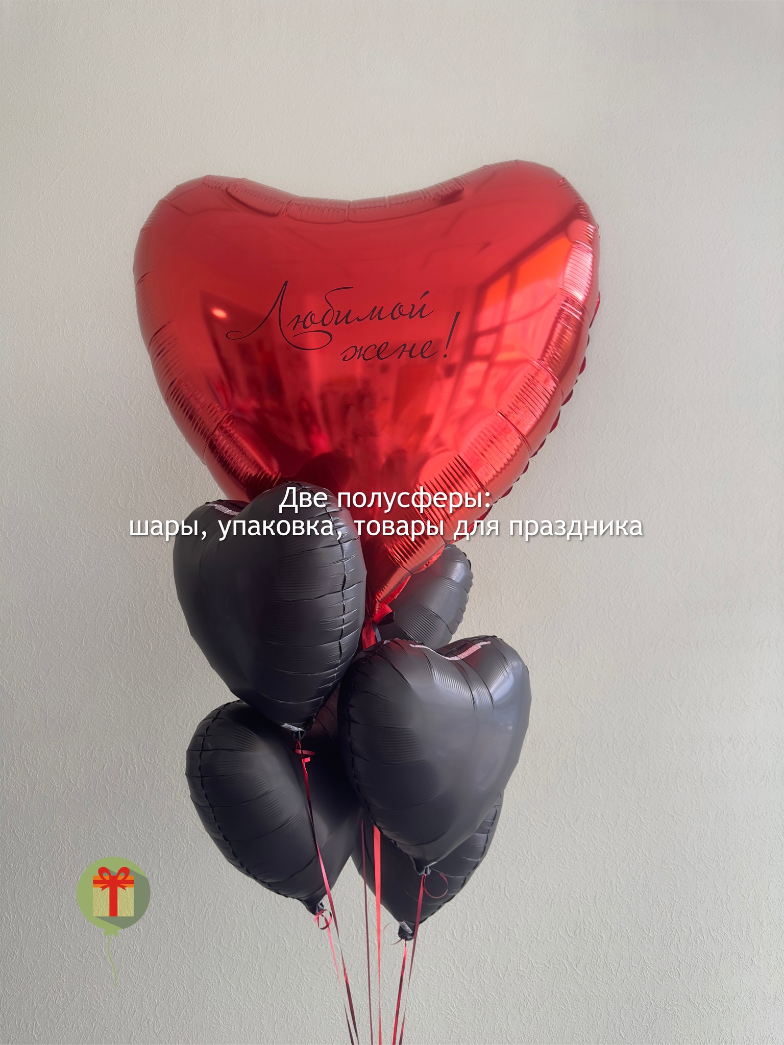 Фонтан из 7 штук: сердце 60 см и 6 сердец 45 см. Грузики и пакеты включены в стоимость.