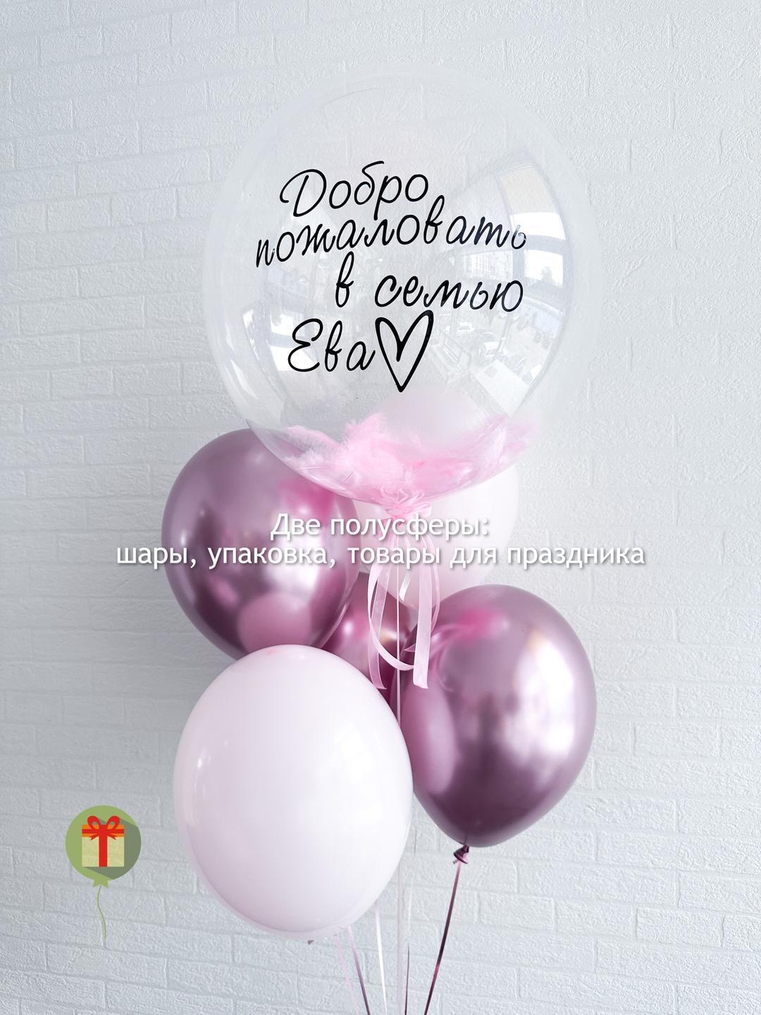 Милый розовый набор из 6 шаров для маленькой принцессы! В составе: сфера 50 см с перьями+ надпись, 3 шара хром и 2 шара пастель. Грузики и пакеты включены в стоимость.