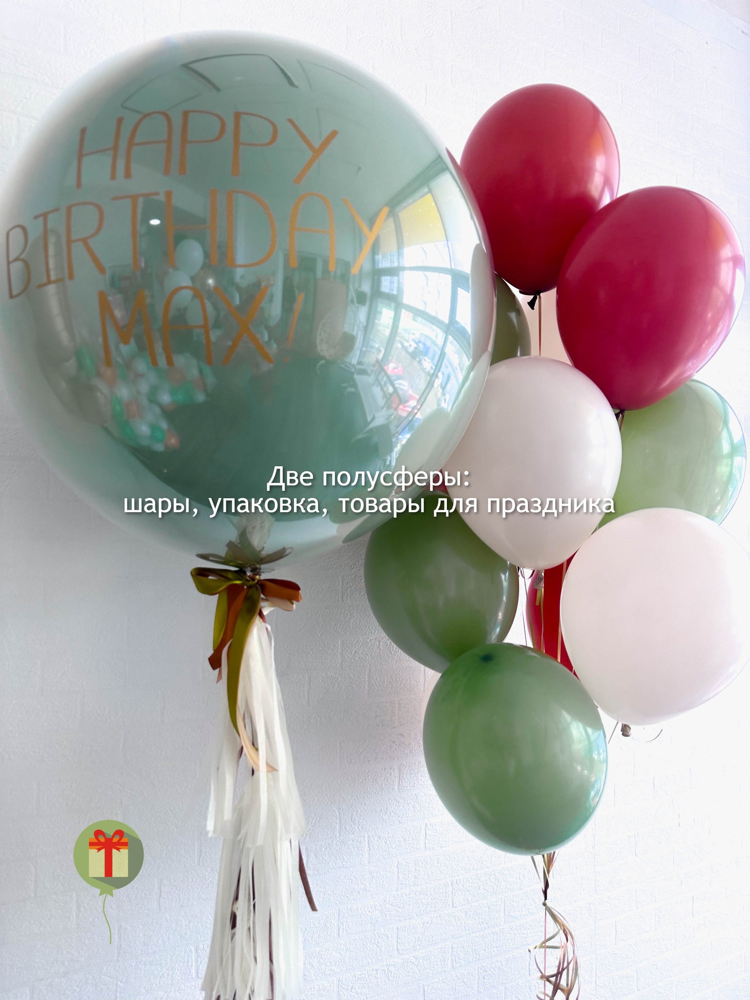 Сфера дабл бабл 60 см+ надпись, декорированная пышным хвостом и фонтан из 13 шаров пастель. Грузики и пакеты включены в стоимость.