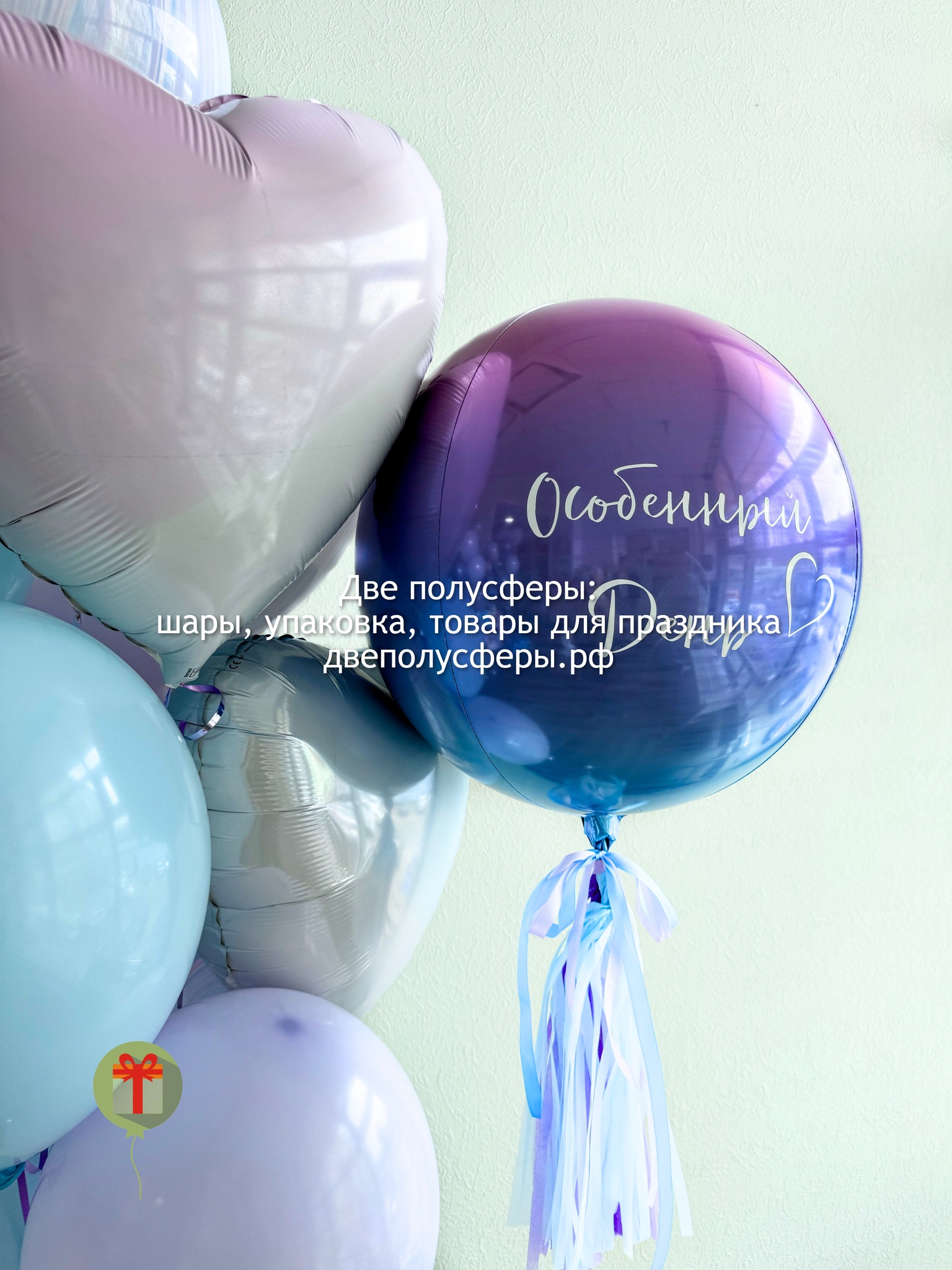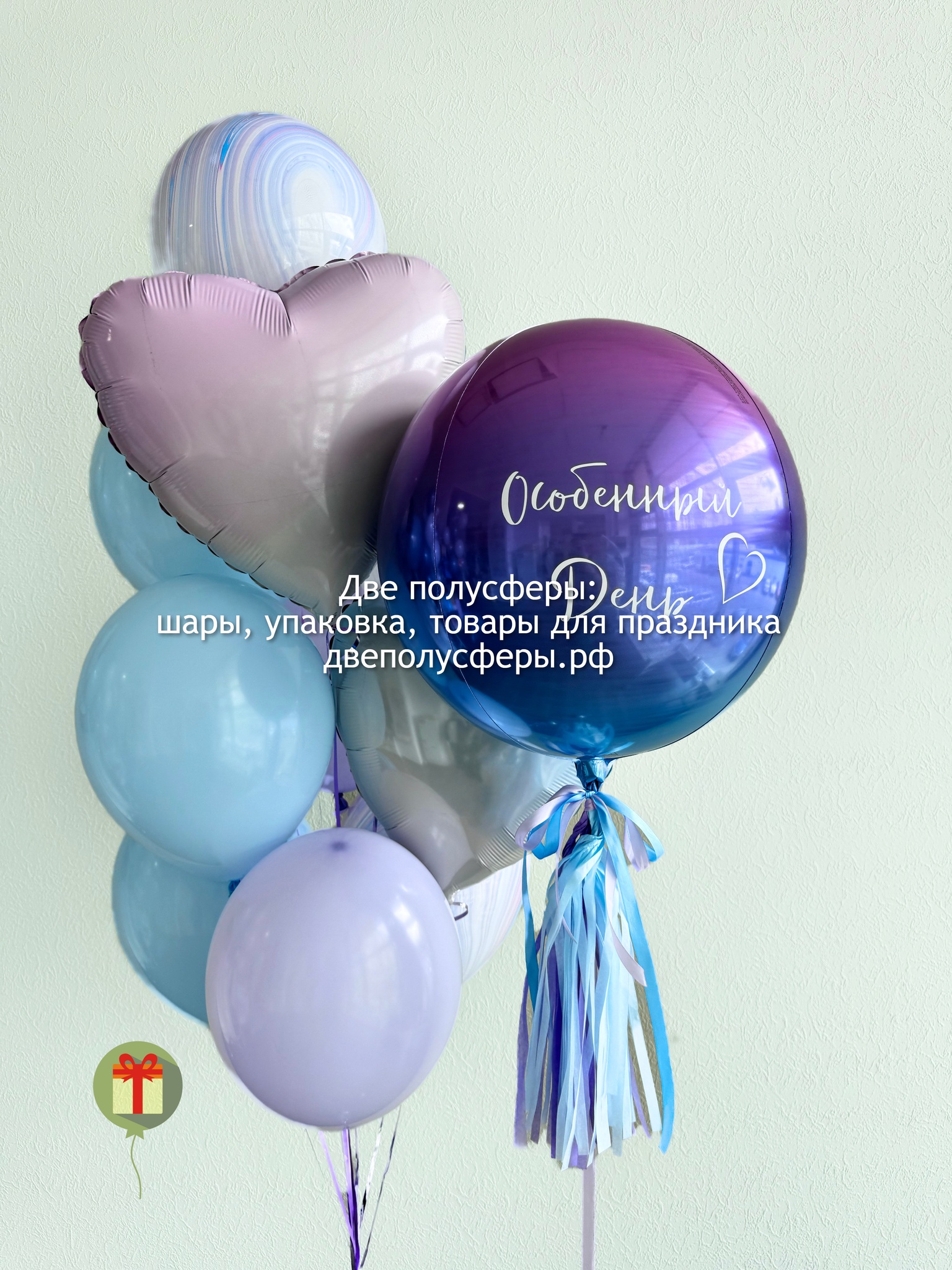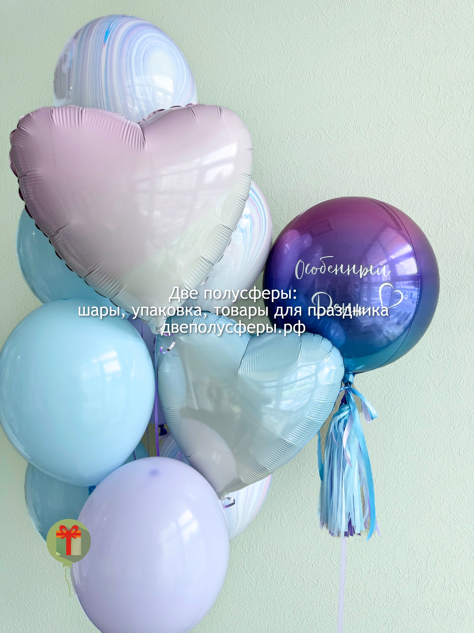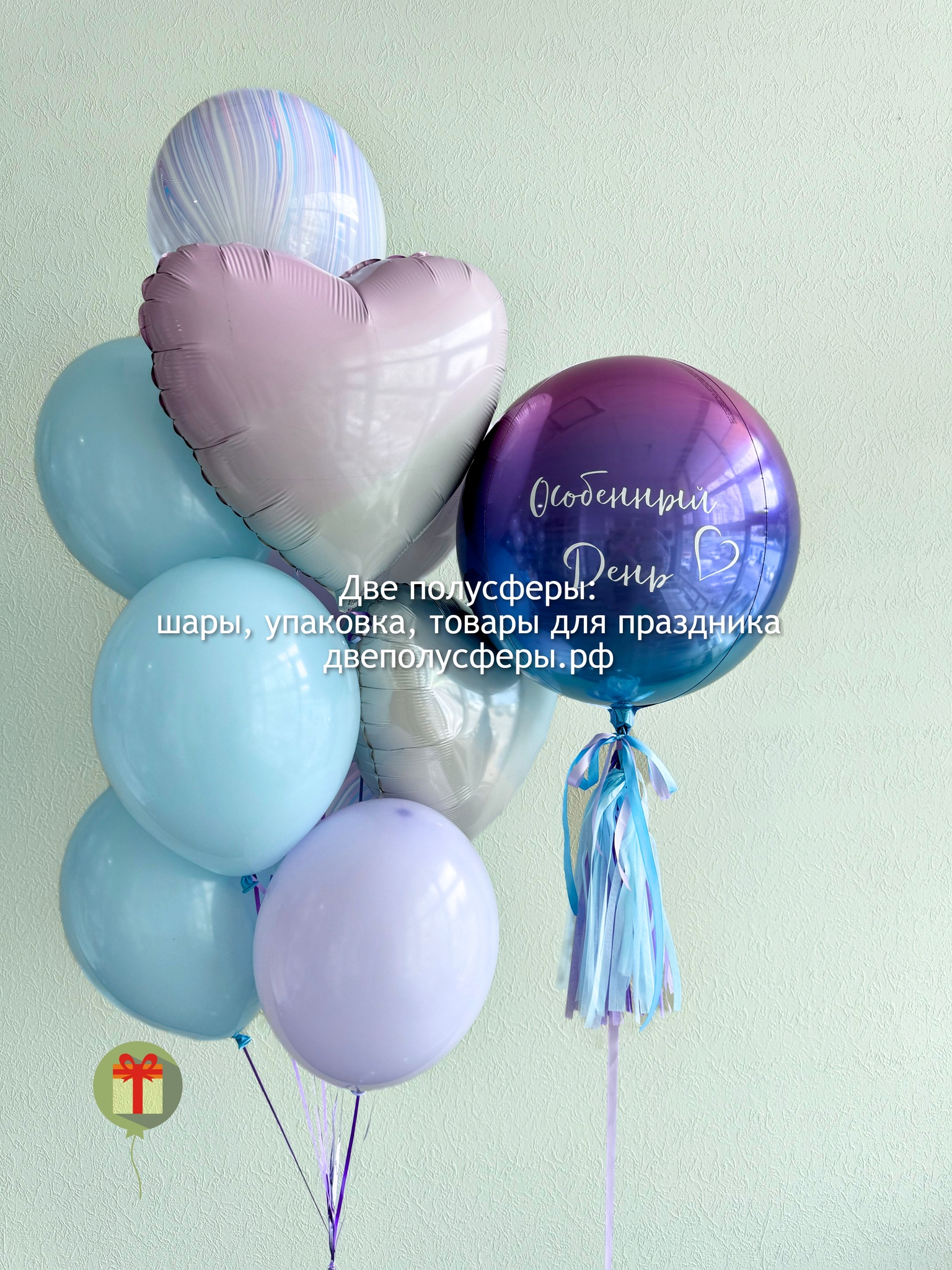 Фонтан из 10 штук: 2 фольгированных сердца 45 см+ надпись, 3 шара агат и 5 шаров пастель; а так же фольгированная сфера 50 см+ надпись. Грузики и пакеты включены в стоимость.