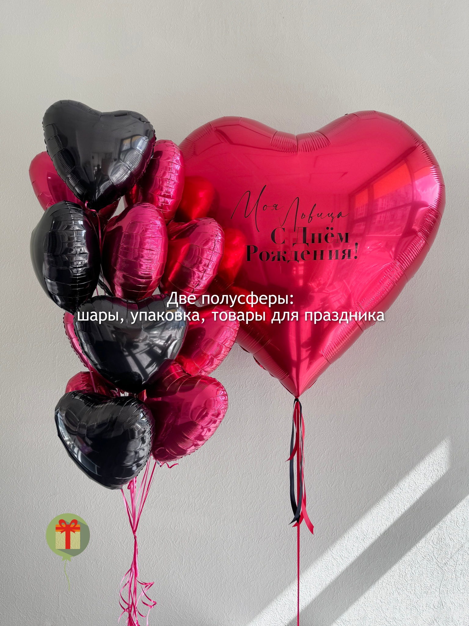 Большое фольгированное сердце 80 см+ наклейка и фонтан из 13 фольгированных сердец 45 см. Грузики и пакеты включены в стоимость.