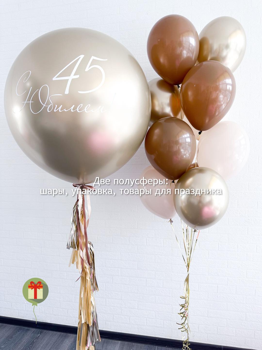 Стильный набор в кофейных оттенках. В составе: латексный шар хром 60 см с надписью и пышным хвостом и фонтан из 10 шаров:4 шара хром и 6 шаров пастель. Грузики и пакеты включены в стоимость.