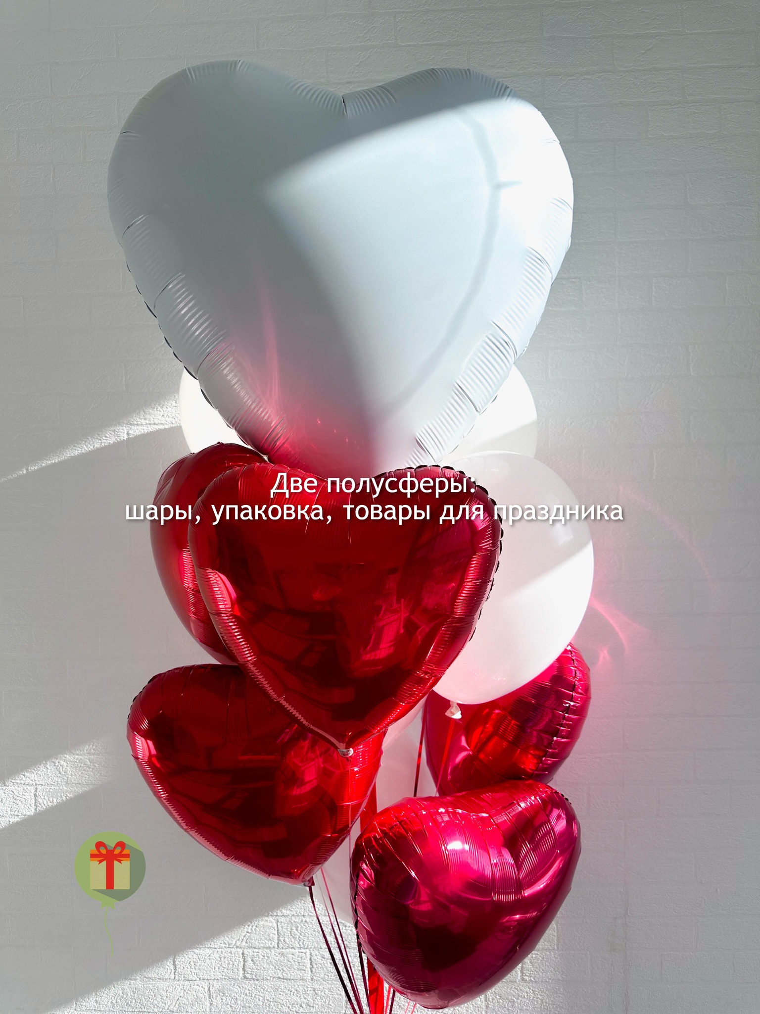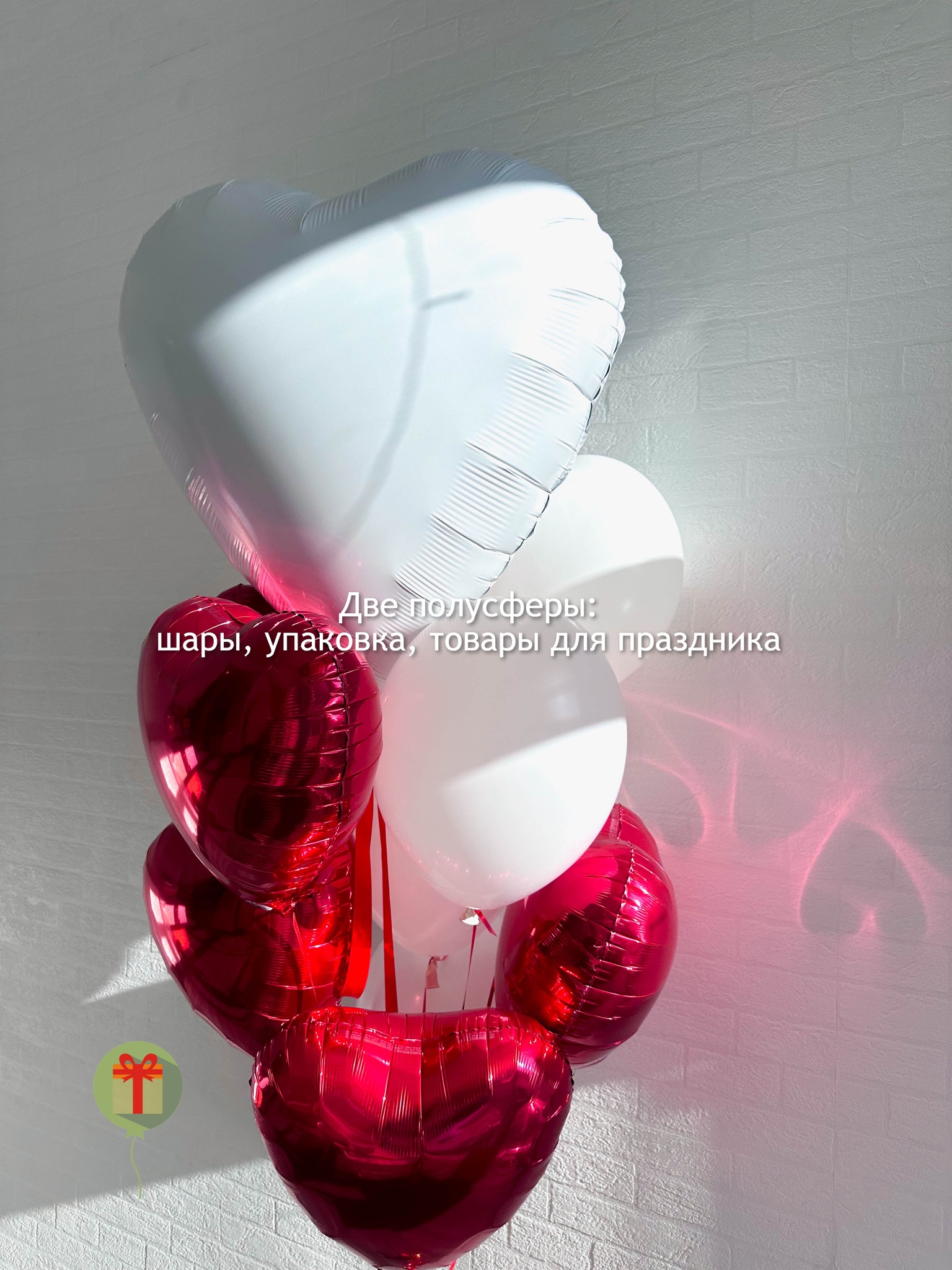 Фонтан из 10 штук: сердце 60 см, 5 сердец 45 см и 4 шара пастель. Грузики и пакеты включены в стоимость.
