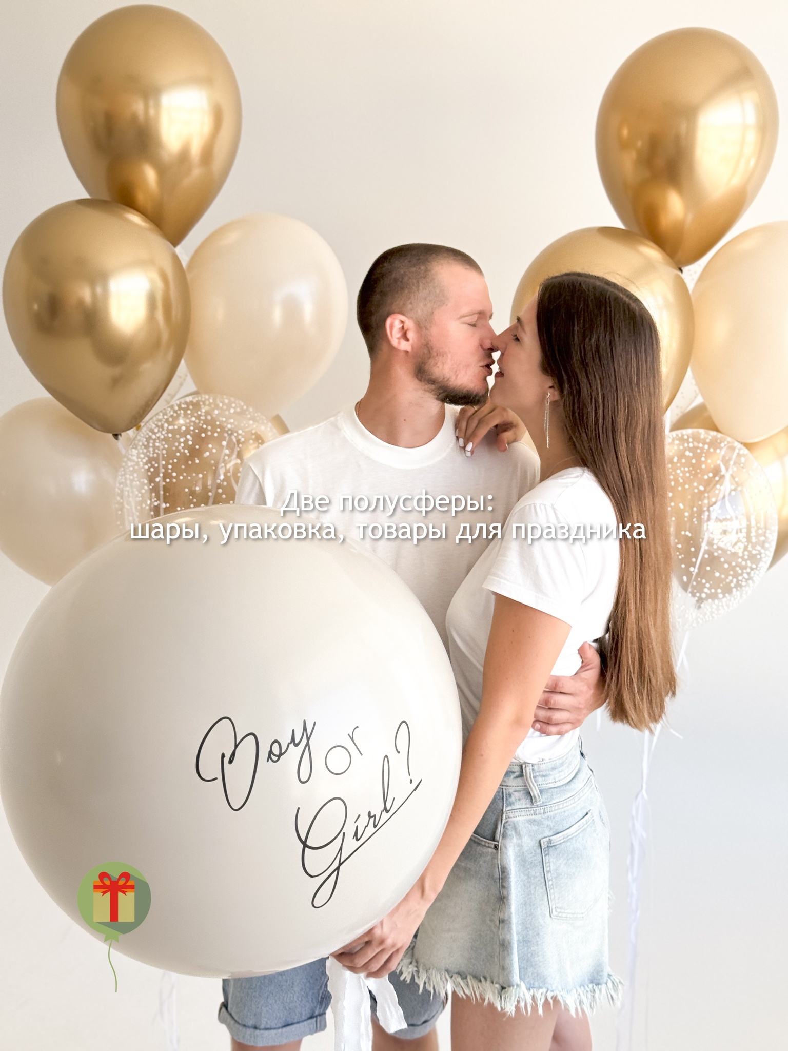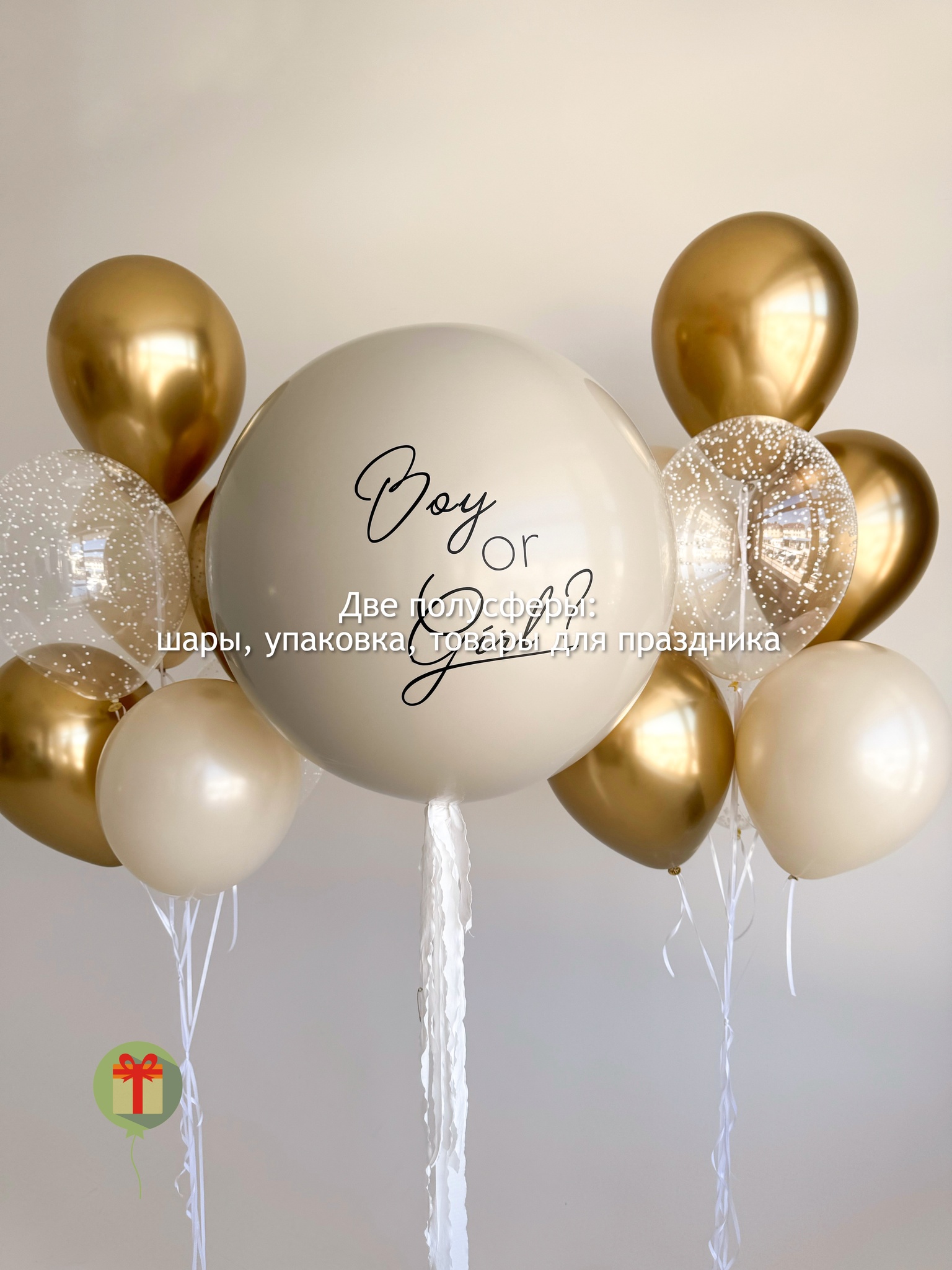 Большой шар бабл дабл 60 см с надписью и 2 фонтана по 6 штук, 3 шара хром, 2 шара с конфетти и 2 шара пастель. Грузик и пакет входят в стоимости.